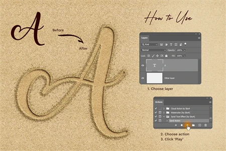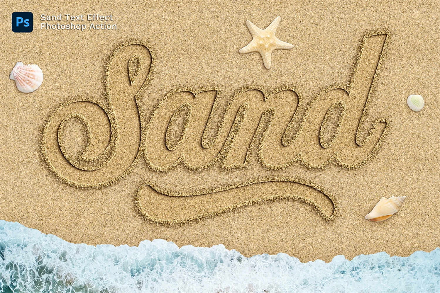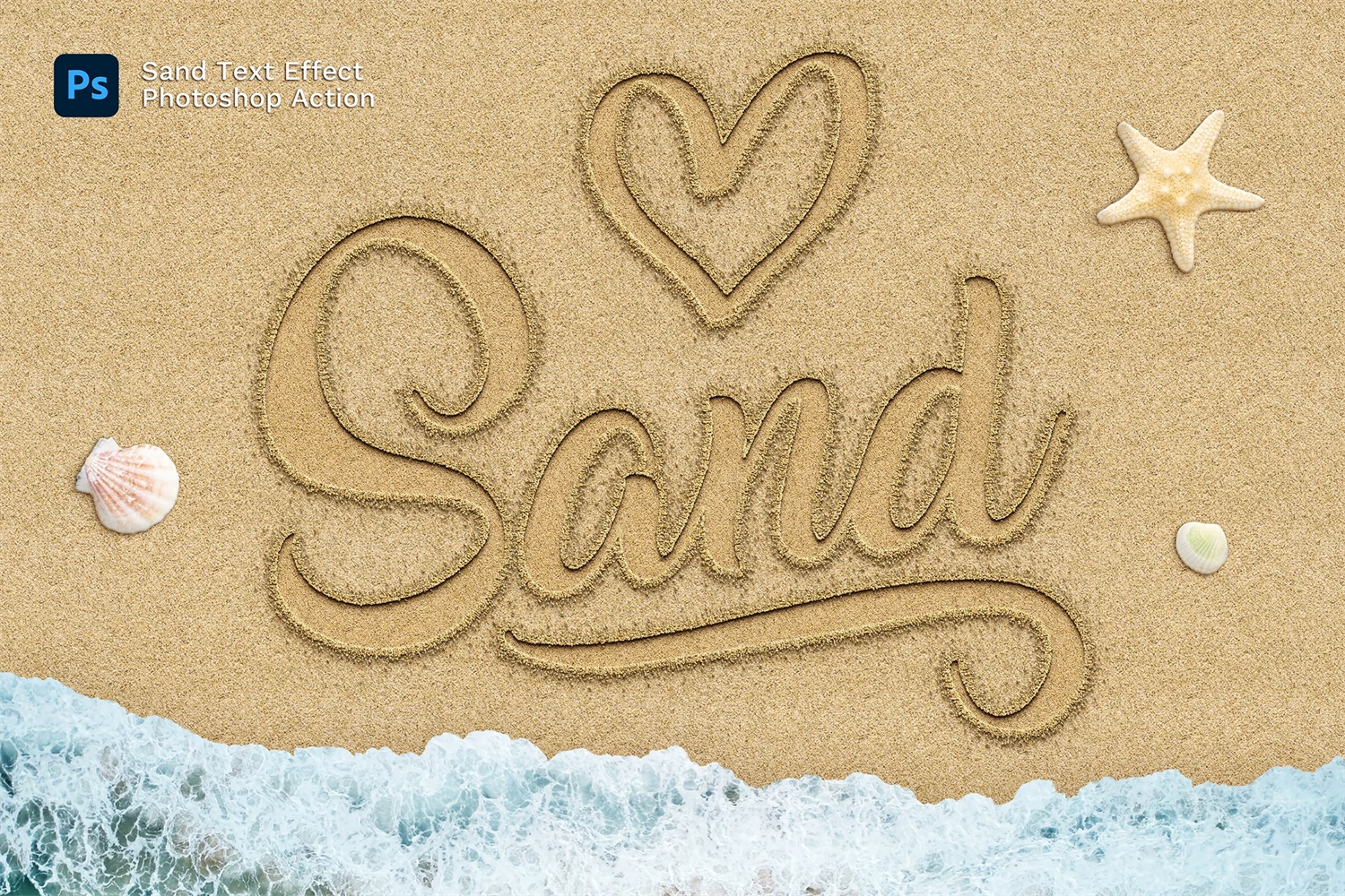 The realistic effect of writing on the sand in just a couple of seconds.
