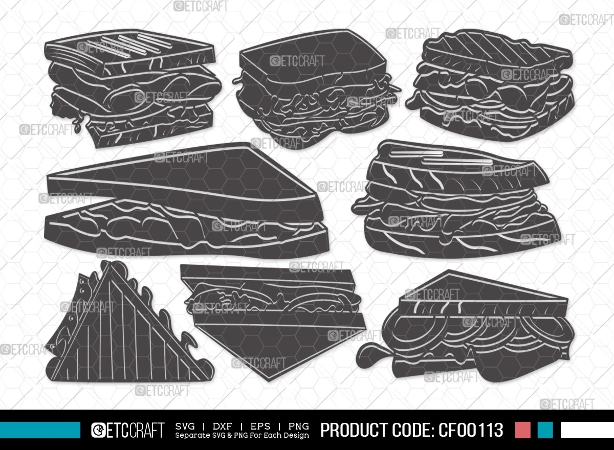 Whet your creative appetite with our Sandwich Silhouette Snacks Lunch Food SVG Cut File Bundle. Let these delectable designs inspire your culinary crafting adventures and bring a flavorful zest to your projects. Start crafting your food-inspired journey today!