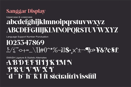 The newest Sanggar serif font, which is iconic and skilled with many unique alternative styles, based on our experience as graphic designers working in many companies, we are often asked to design logos with a unique style but with an elegant shape. So, we tried to create a Studio type and create this font to get the idea out. It is perfect for BRANDING and LOGO DESIGN. You will get a classy, elegant, and of course unique logo with this font.