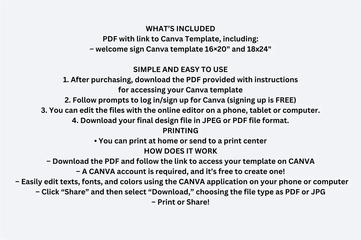 1. Fownload the PDF provided with instructions for accessing your Canva template
