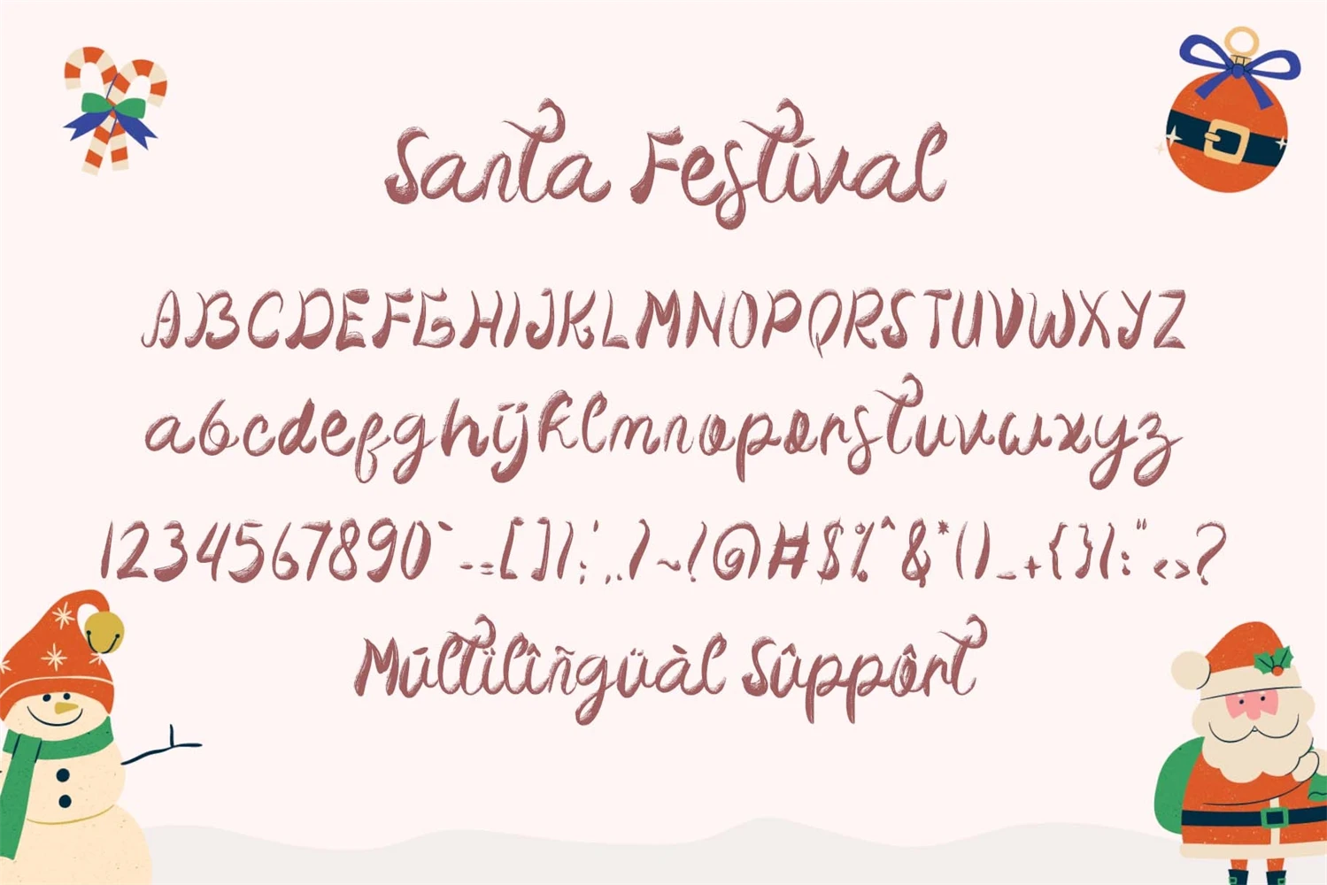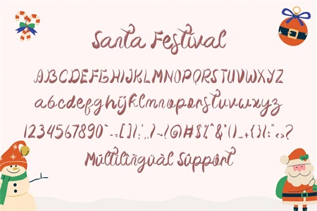 "Santa Festival" is a unique and elegant brush font. This font is perfect for Christmas, Halloween, back to school, invitations, stickers, banners, posters, branding, and more. Equipped with uppercase, lowercase, numerals, punctuation, and multilingual support.