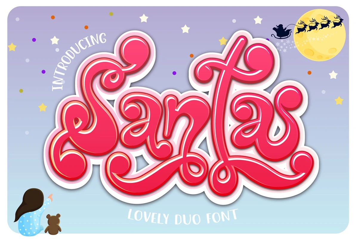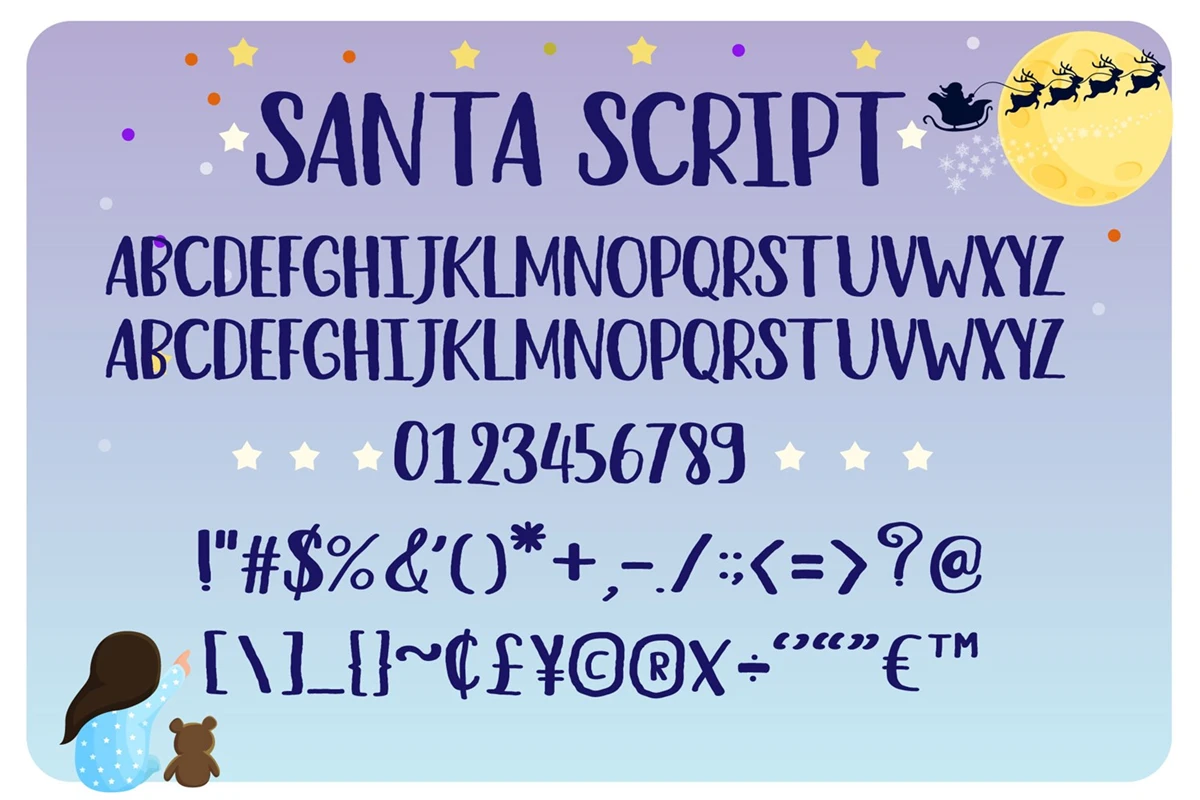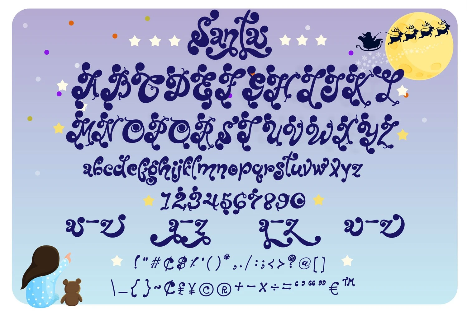 Santa Font is a lovely duo font featuring both a display and script style. With its retro and vintage vibes, this font is perfect for adding a chic and cheery touch to your crafts. Whether used together or separately, Santa Font brings a delightful and festive charm to your designs. The font is PUA encoded, granting you easy access to all the unique glyphs and swashes it offers. Let your creativity soar with Santa Font and create beautiful typographic artworks, branding, invitations, and more.