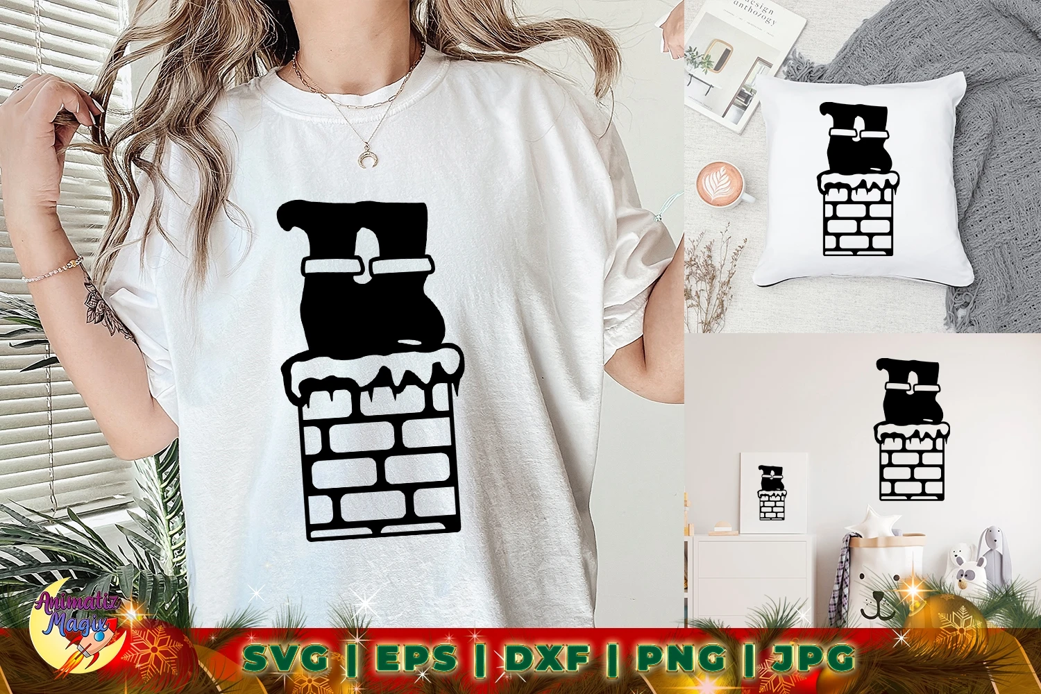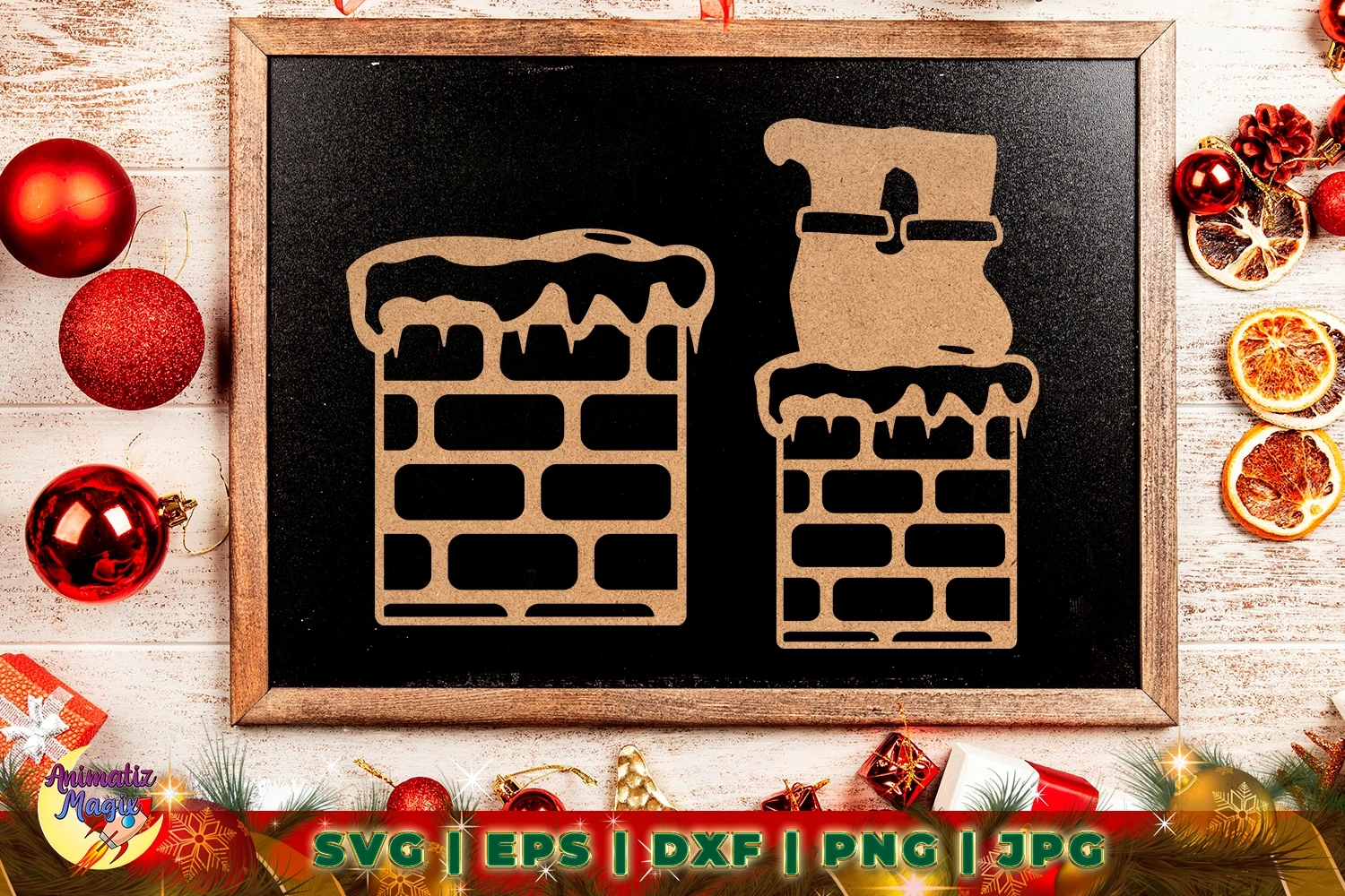 Santa Goes Down A Chimney With Snow SVG Cut File