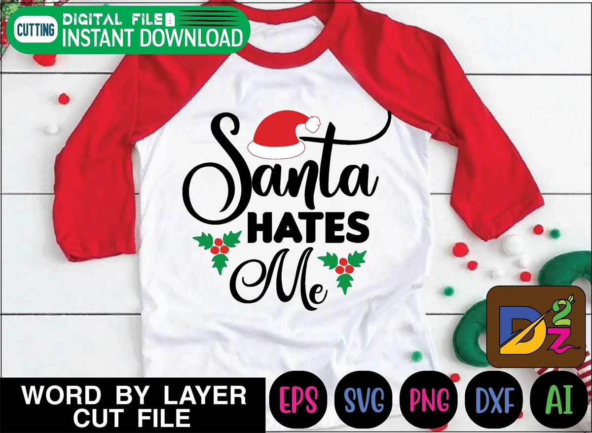 Santa Hates Me t shirt design This is an instant download cutting file compatible with many different cutting software/machines like cricut Silhouette