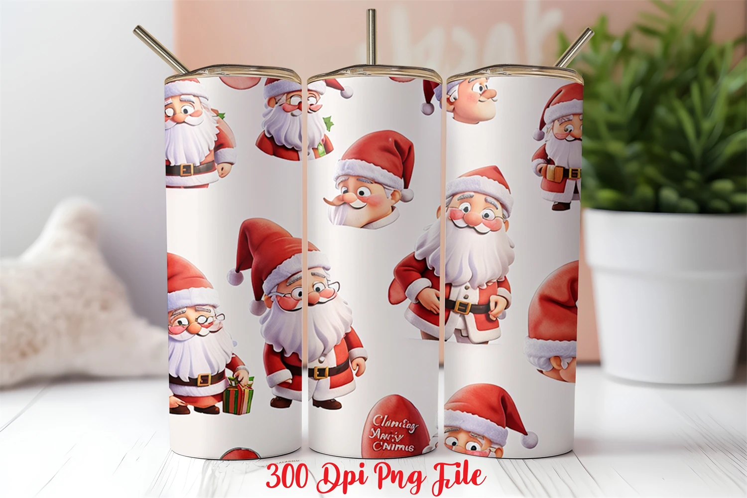 Santa Pattern Tumbler Sublimation Wrap Designs PNG