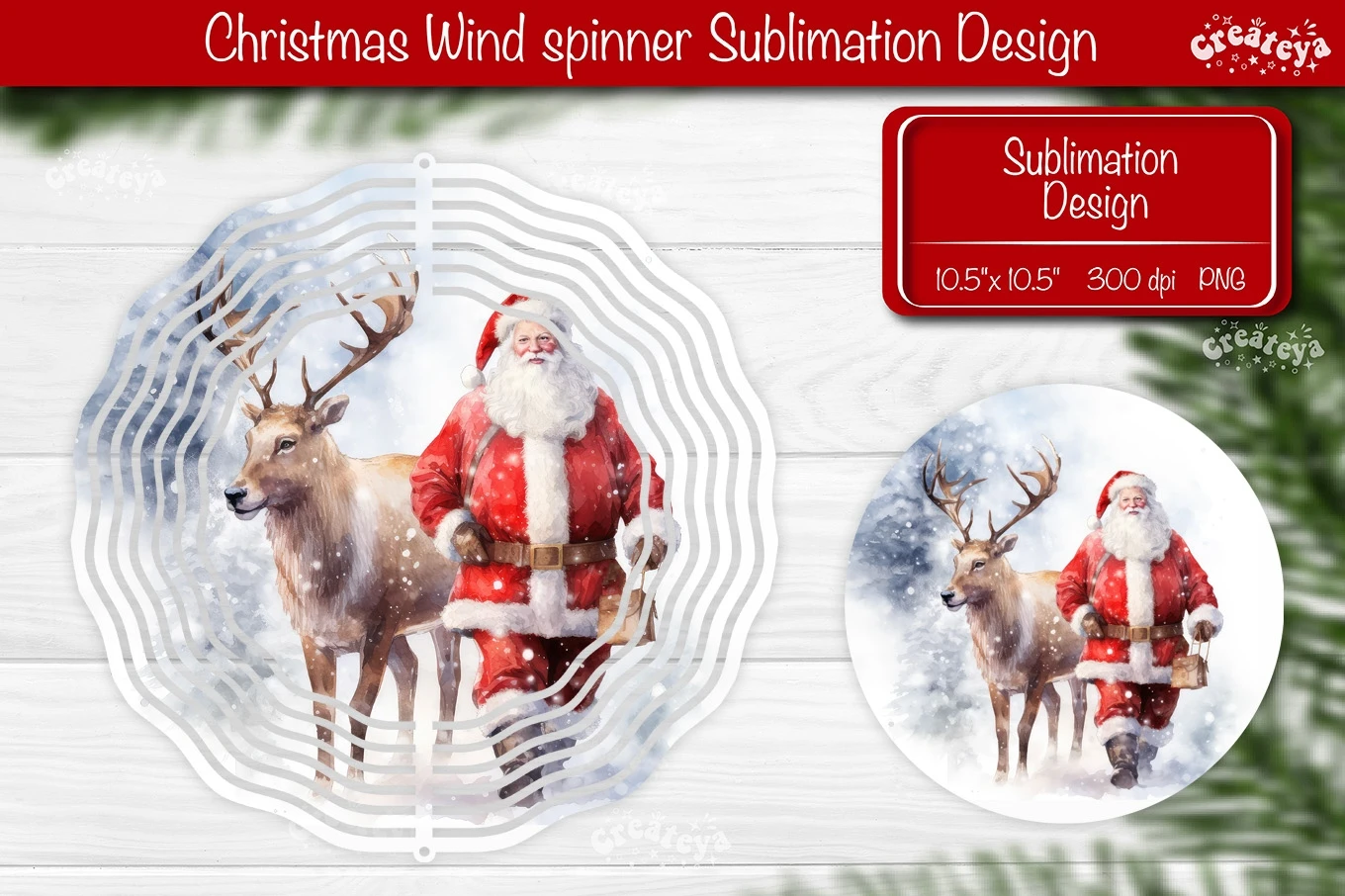 Round Christmas Wind Spinner with Vintage Santa with reindeer PNG. These Christmas design of wind spinner bring a touch of snow-filled charm and a warm, fuzzy feeling to your home decor.