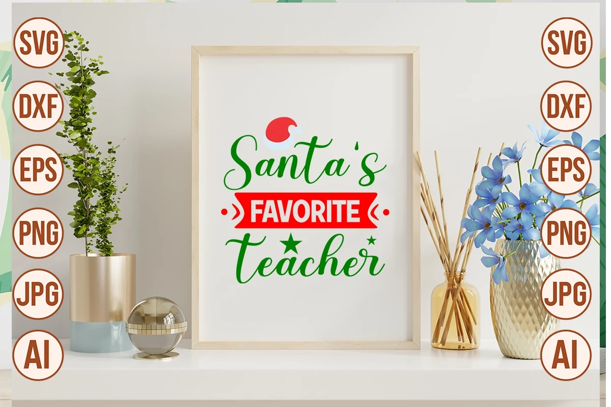 Santa's Favorite Teacher SVG Cut File Svg designs