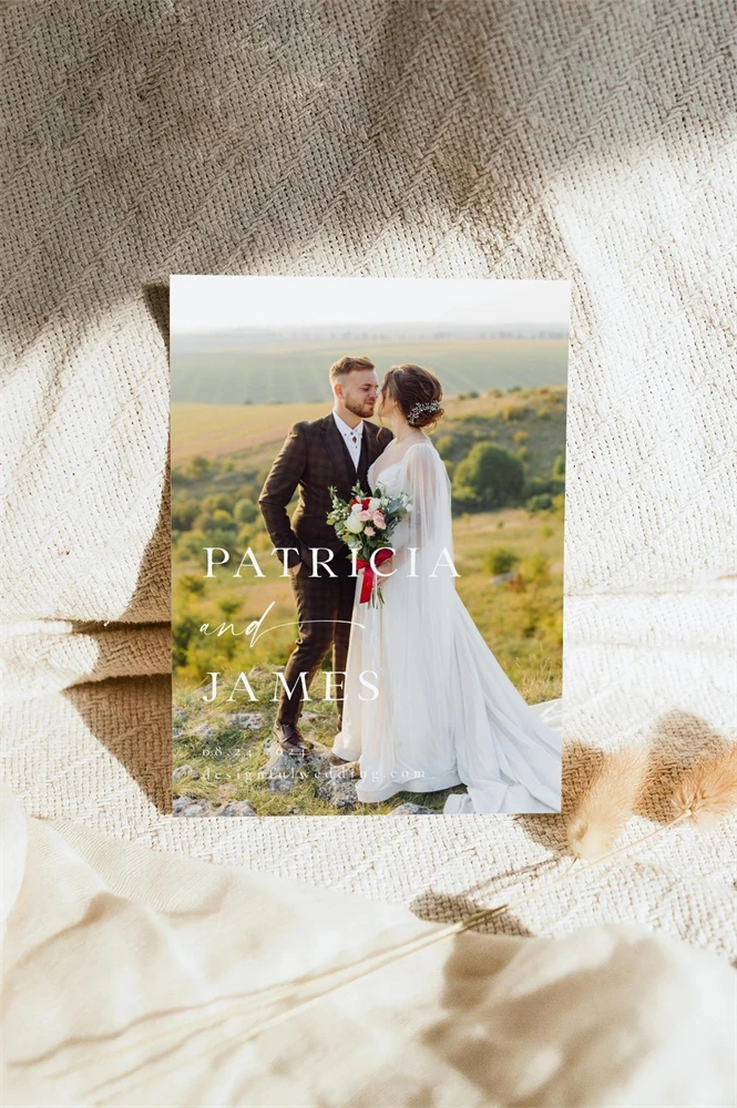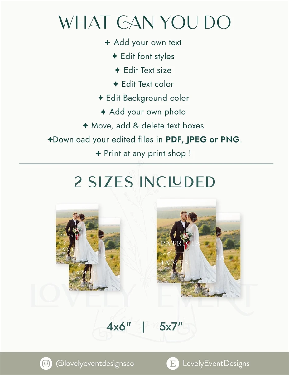 This Save The Date Template with Photo template features a modern aesthetic, perfect for those who want to have some amazing wedding stationery. This template eliminates the need to contract a designer to create your wedding stationery.