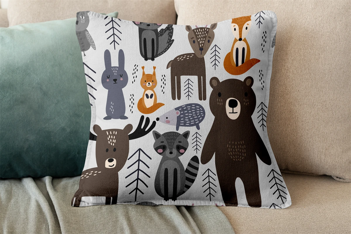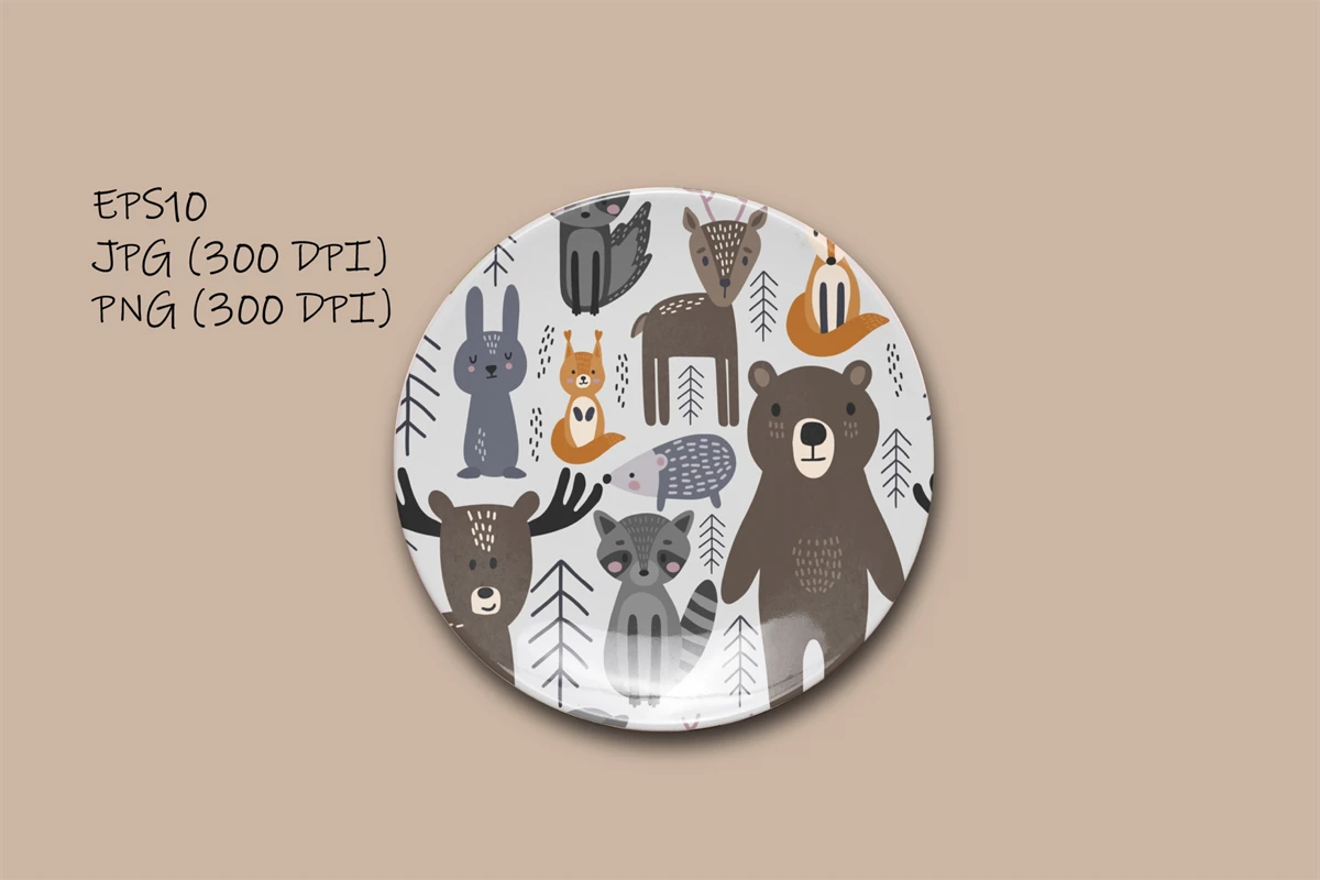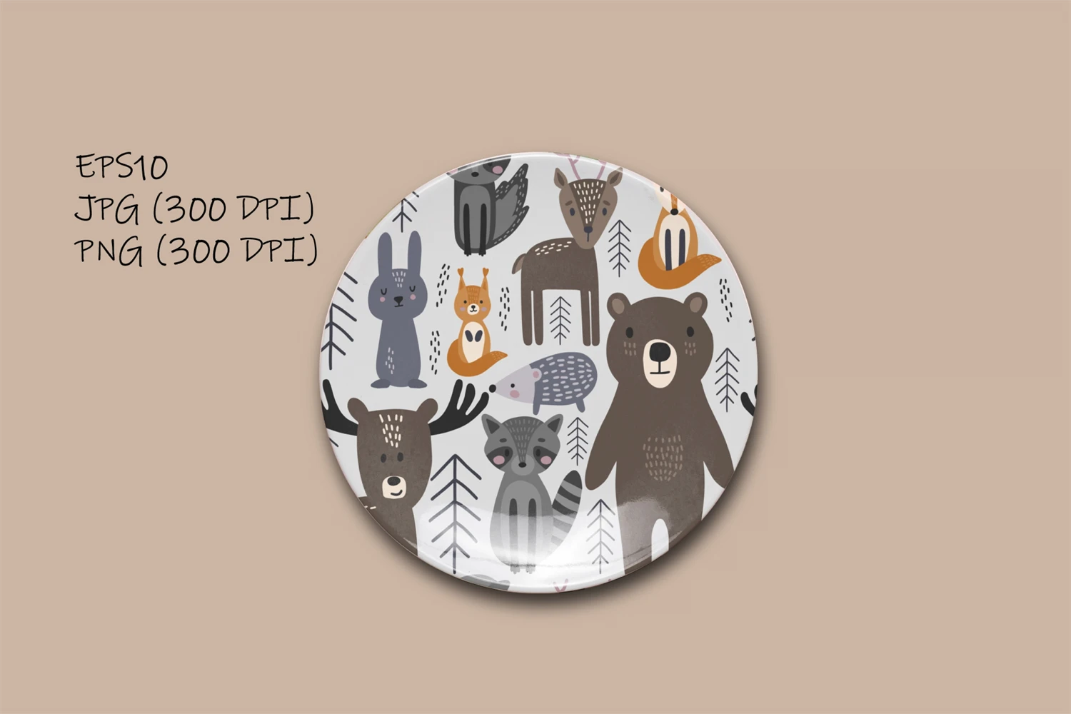 Vector collection of high quality colorful Scandinavian animals with seamless patterns. Funny, cute, hygge, doodle illustration and pattern for print, baby shower invites, textile, decoration kids playroom.
