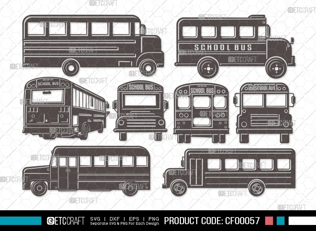 Embark on an educational adventure with our "School Bus Silhouette Back & Front Side" SVG cut file bundle. Capture the excitement of going back to school and infuse creativity into your projects with these versatile and customizable silhouette designs.