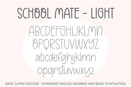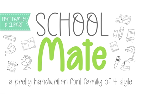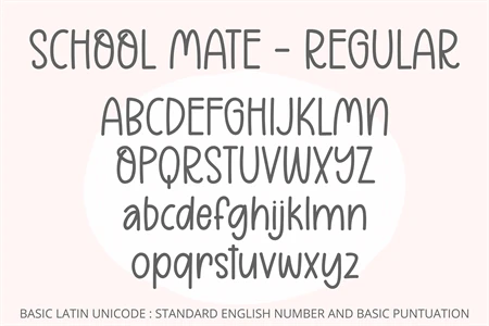 School Mate is a cute and relaxed handwritten family font. Its natural and unique style makes it suitable for a variety of design ideas. Add it confidently to your projects, and you will love the results.