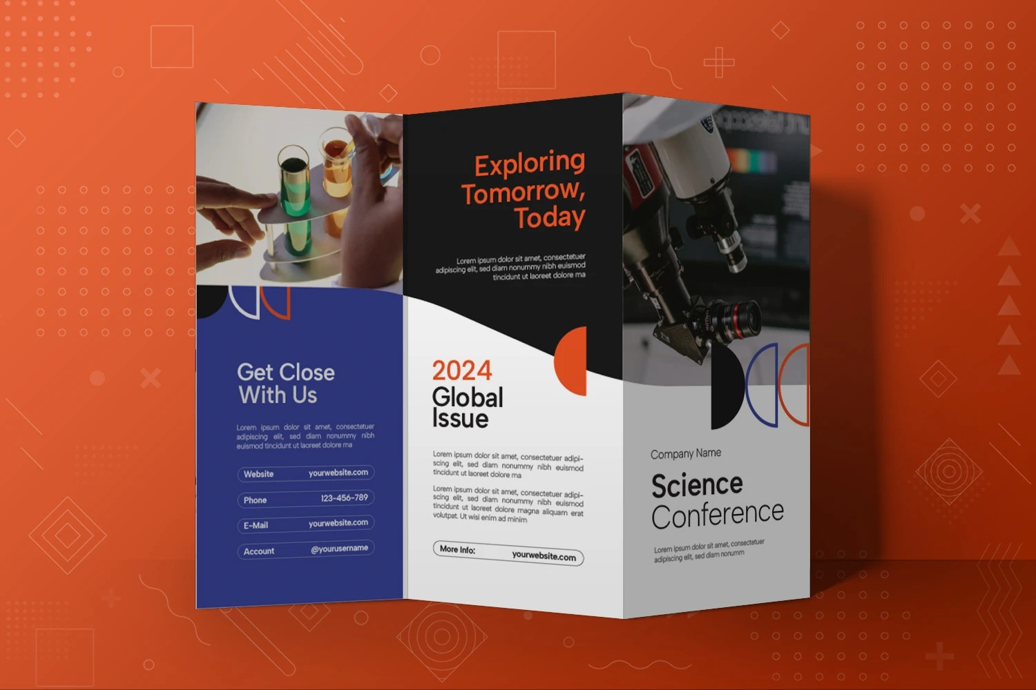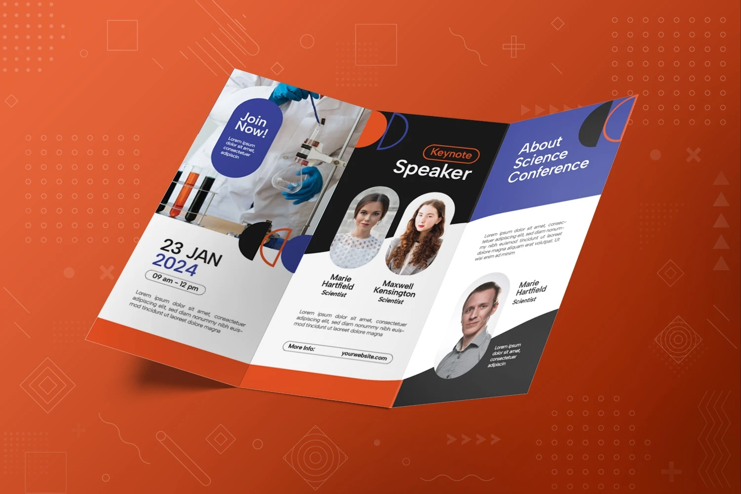 Discover our trifold brochure design template for creative communication. Each fold reveals information, visuals, and captivating content, making it a versatile platform to convey your impactful message.