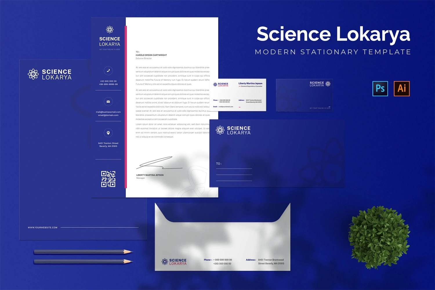 Science Lokarya - Stationary. This template is great for your business and this design will make your interested, elegant, and easily editable according to your needs. I hope you enjoy for this stationary.