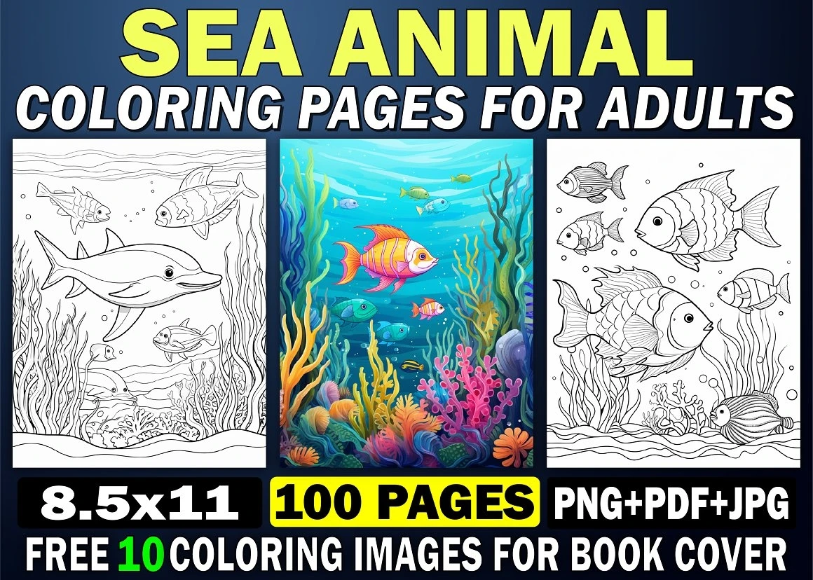 Sea Animal Coloring Pages for Adults 1 : Word Searches, Color- By-Numbers, Puzzles, Count-and-Color,