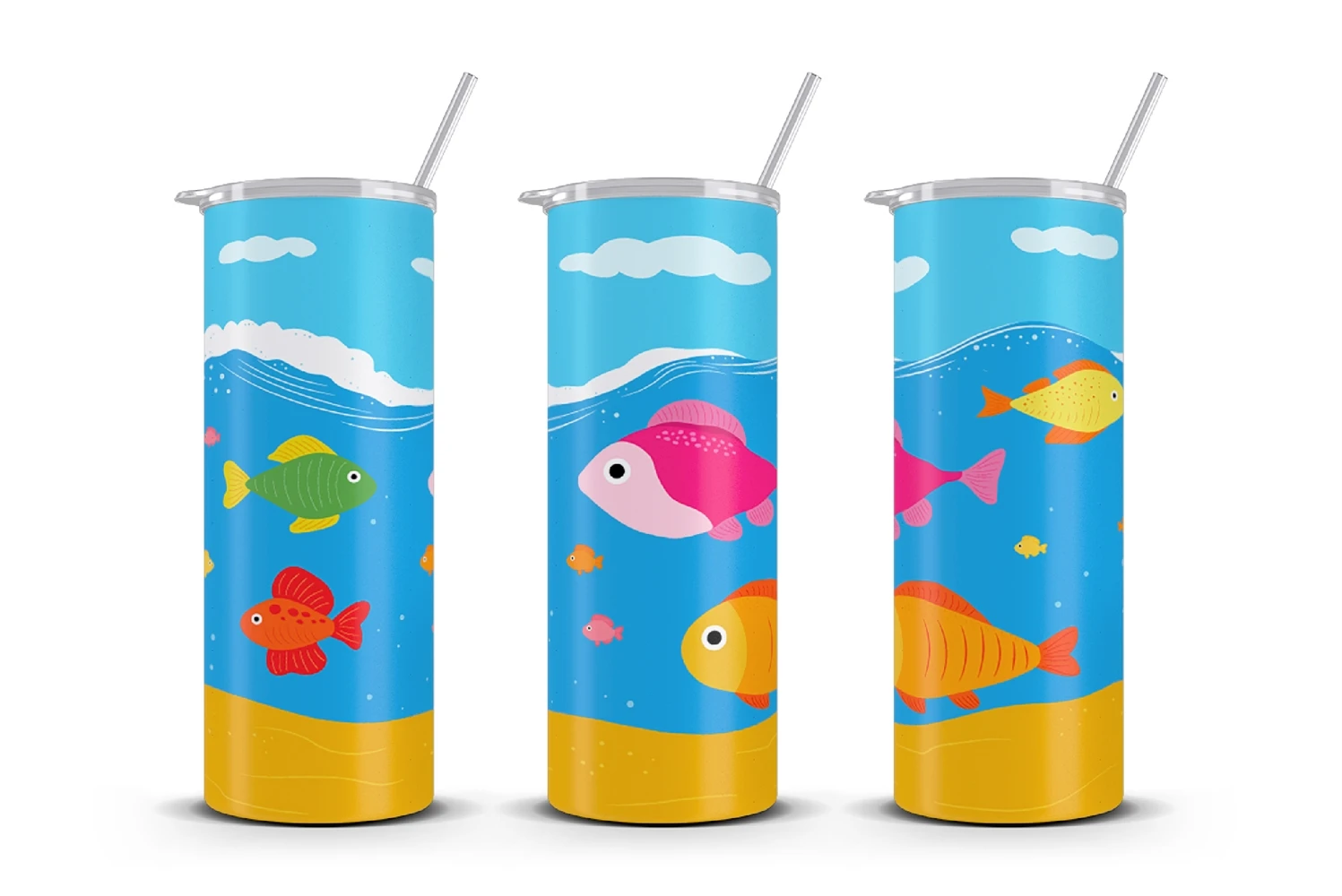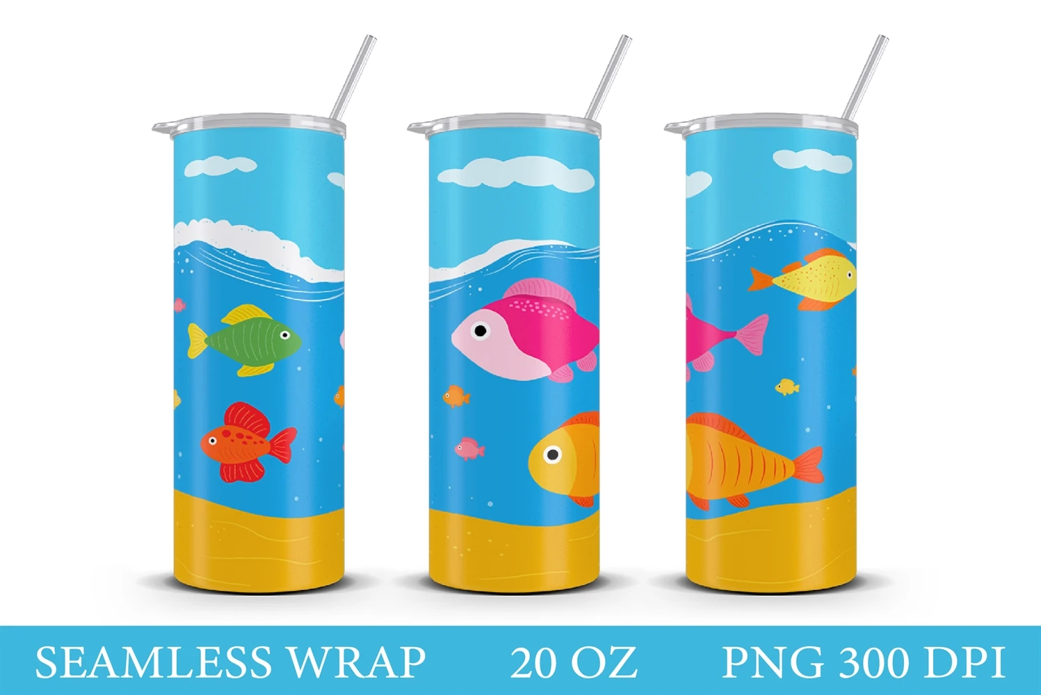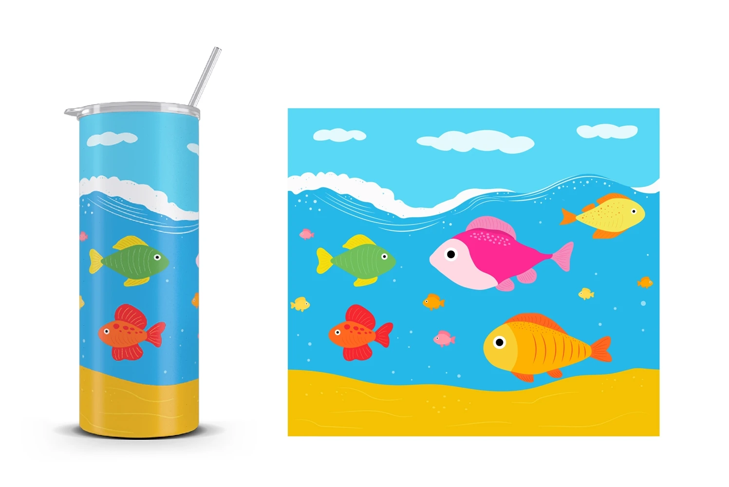 Sea Tumbler Design. Fish Tumbler Seamless Wrap
