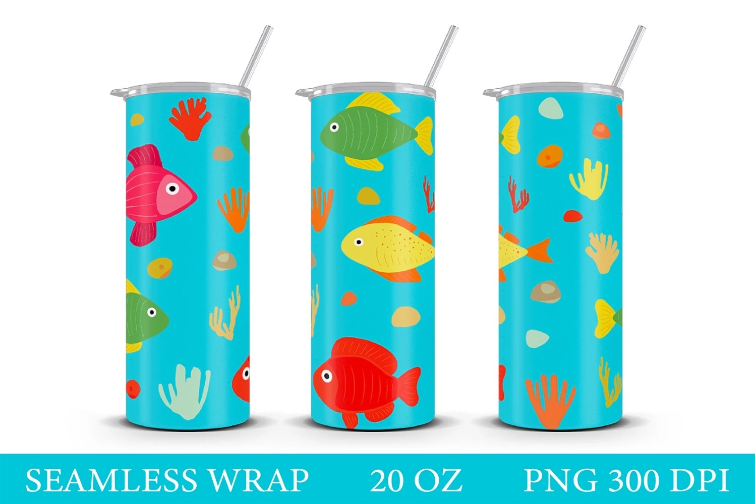 Sea Tumbler Wrap. Fish Tumbler Design. Summer Tumbler Wrap