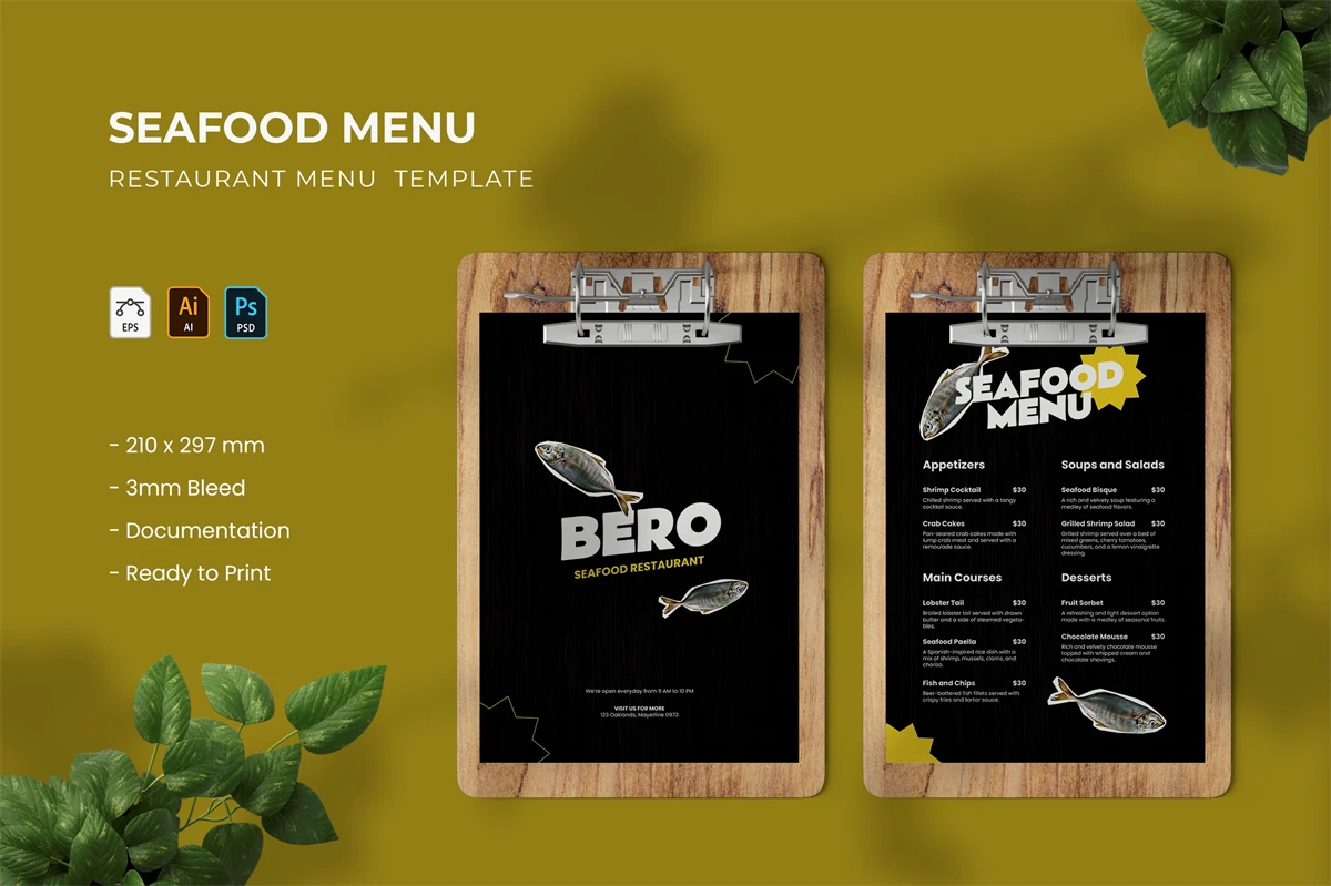 Menu Restaurant Template is a menu template for people who sell, business, or run a food-related business. The layout makes it easy to find the menu you want. Too many choices can make customers feel overwhelmed, so its better to limit the number of choices, colors, and other design elements so that customers can easily scan and order items.