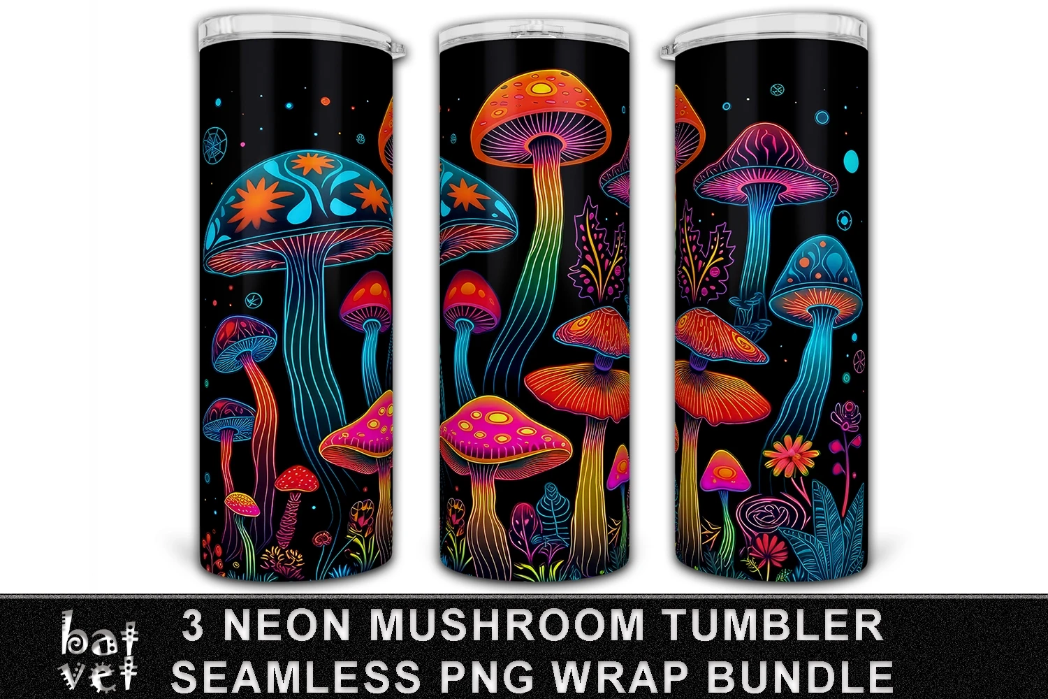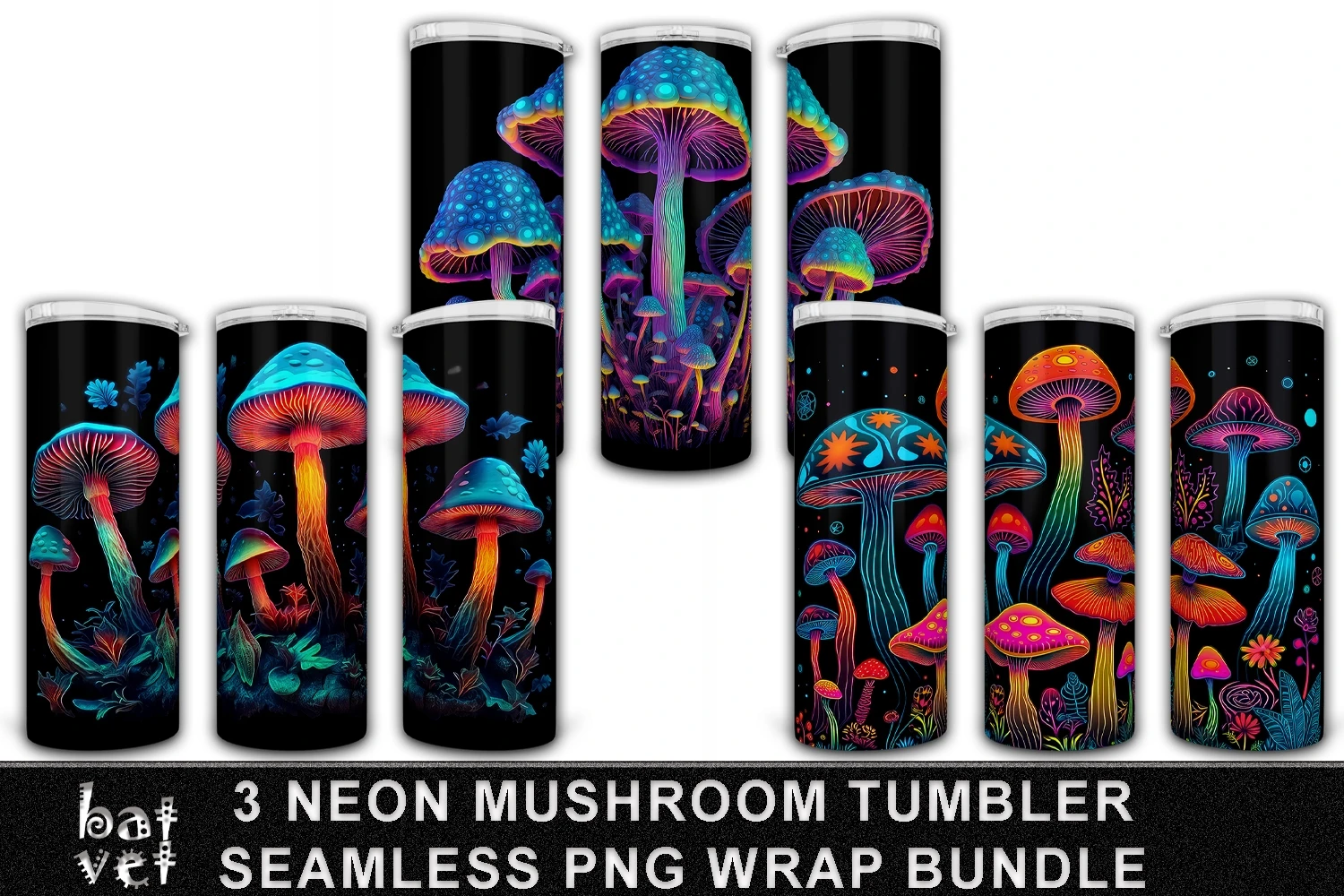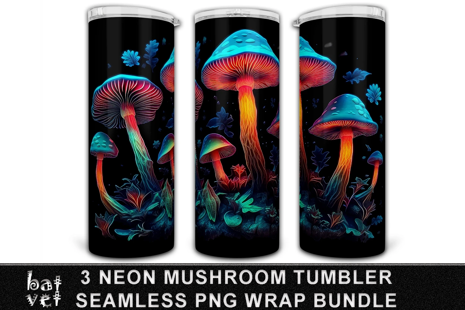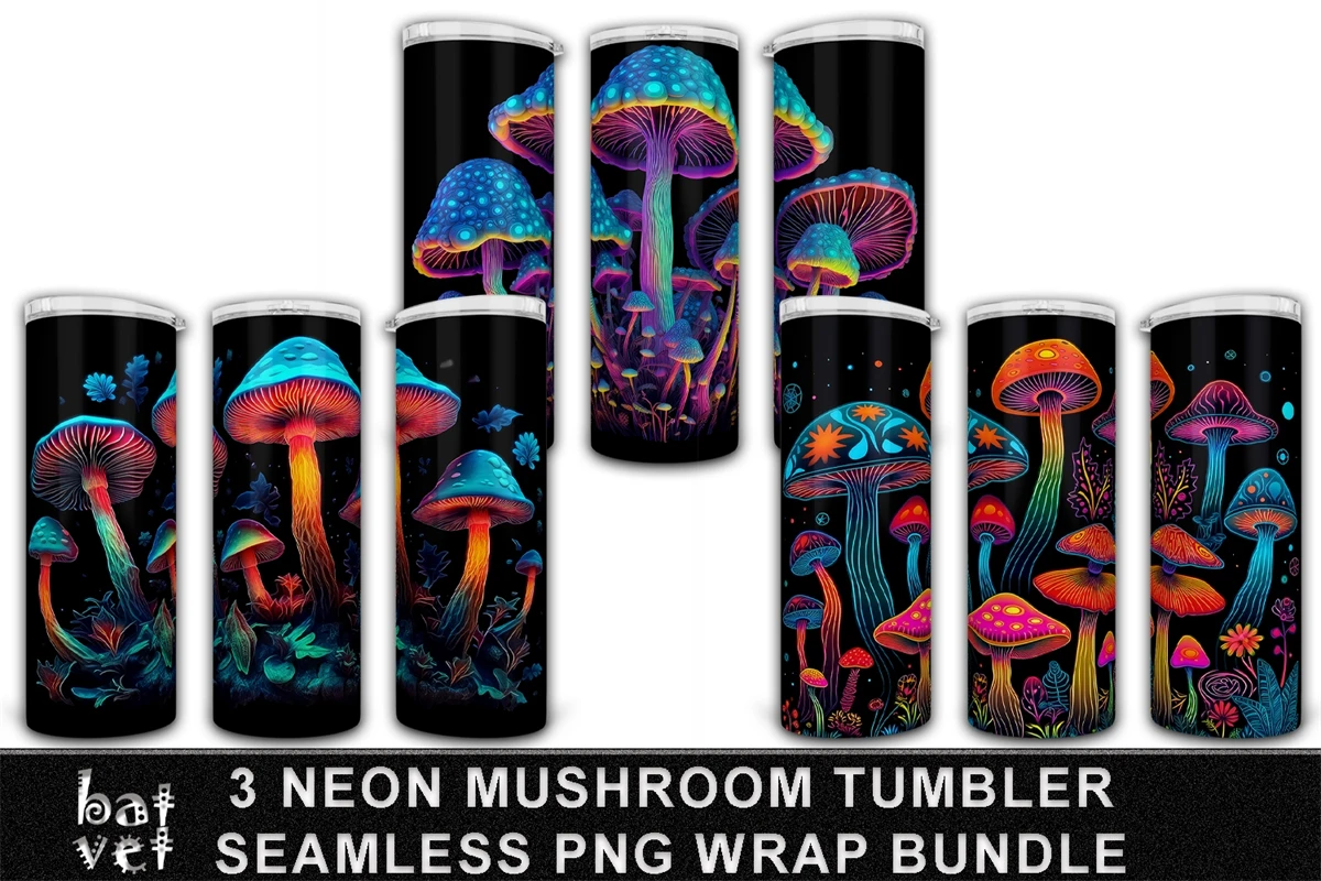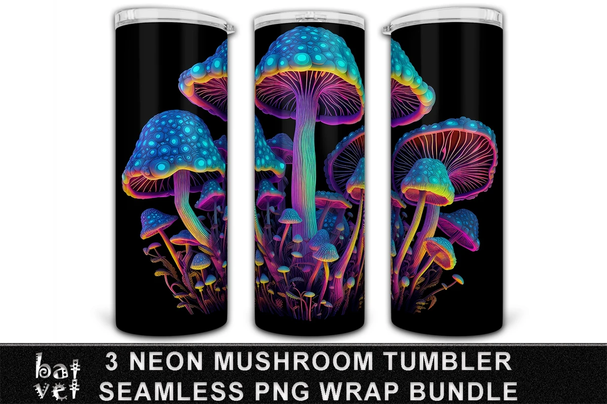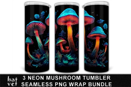 3 Seamless Neon Mushroom Tumbler Wrap Bundle
