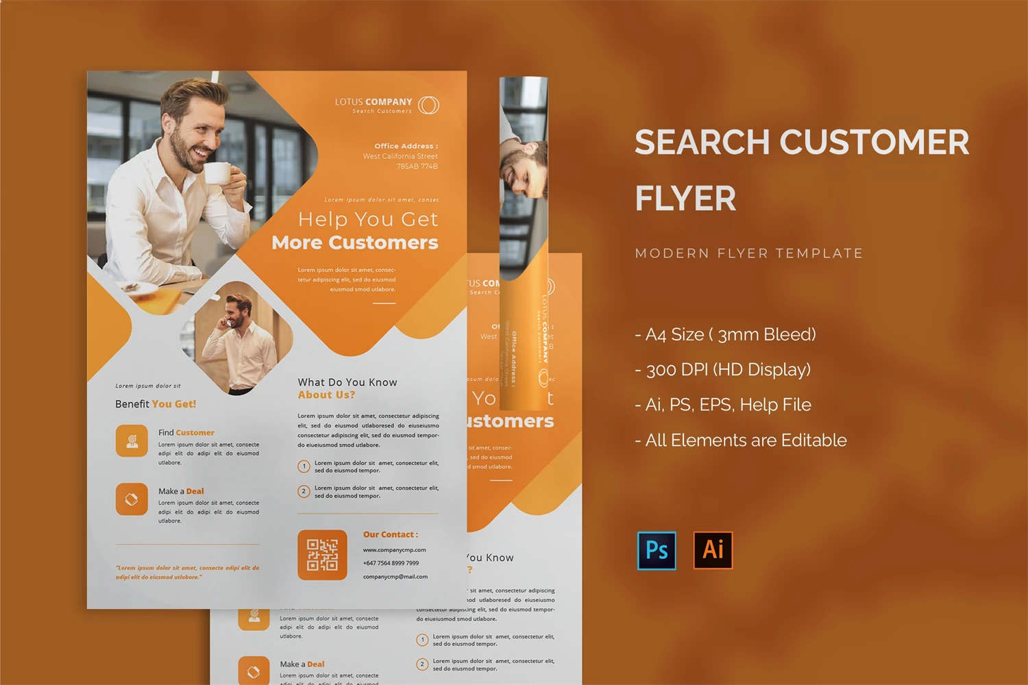 Search Customer - Flyer. This Flyer template is designed for your company's business needs. very clean and elegant, and also easily edited and adjusted to your liking