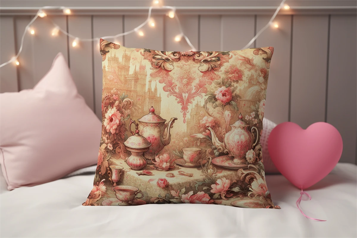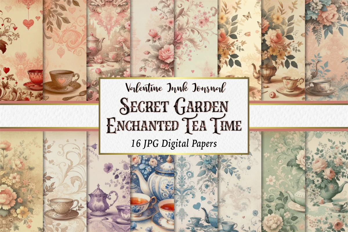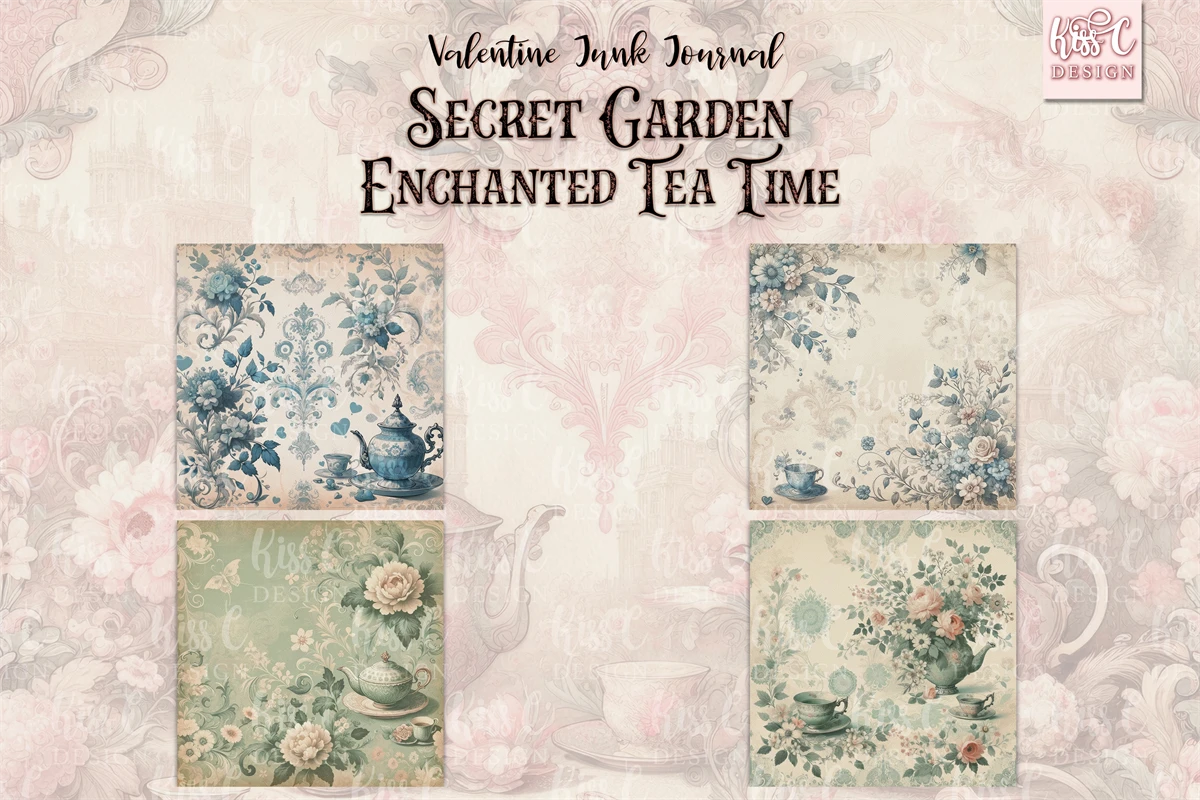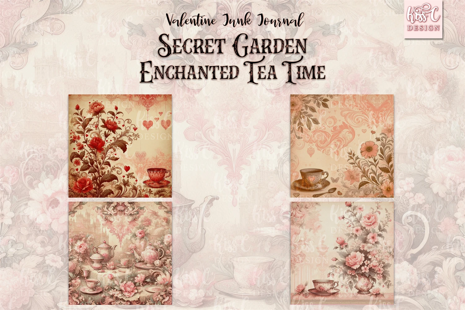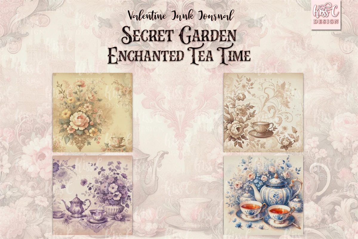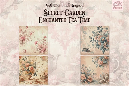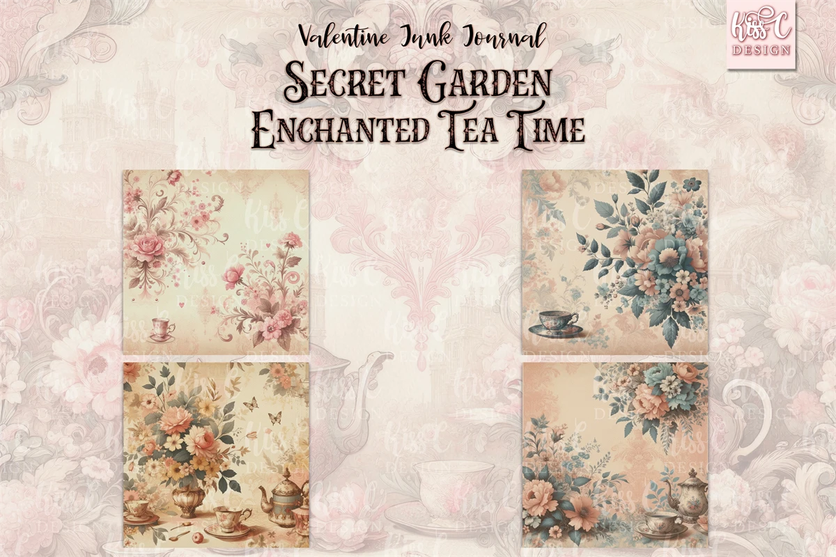 Vintage Tea Party Enchanting Floral Illustrations - Valentine's Day Seasonal Background for wallpaper, planner, journal, Scrapbooking, and more.