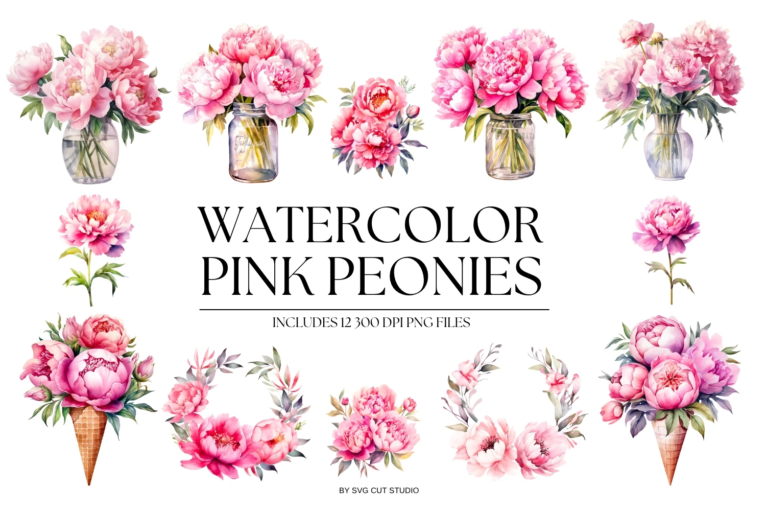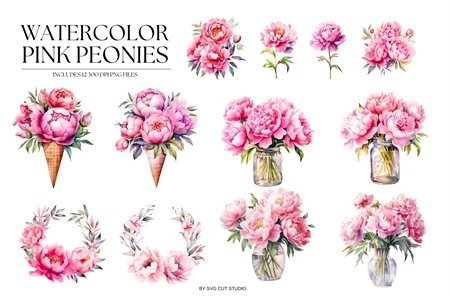 This watercolor pink peonies clipart set will add a touch of elegance and charm to any project.