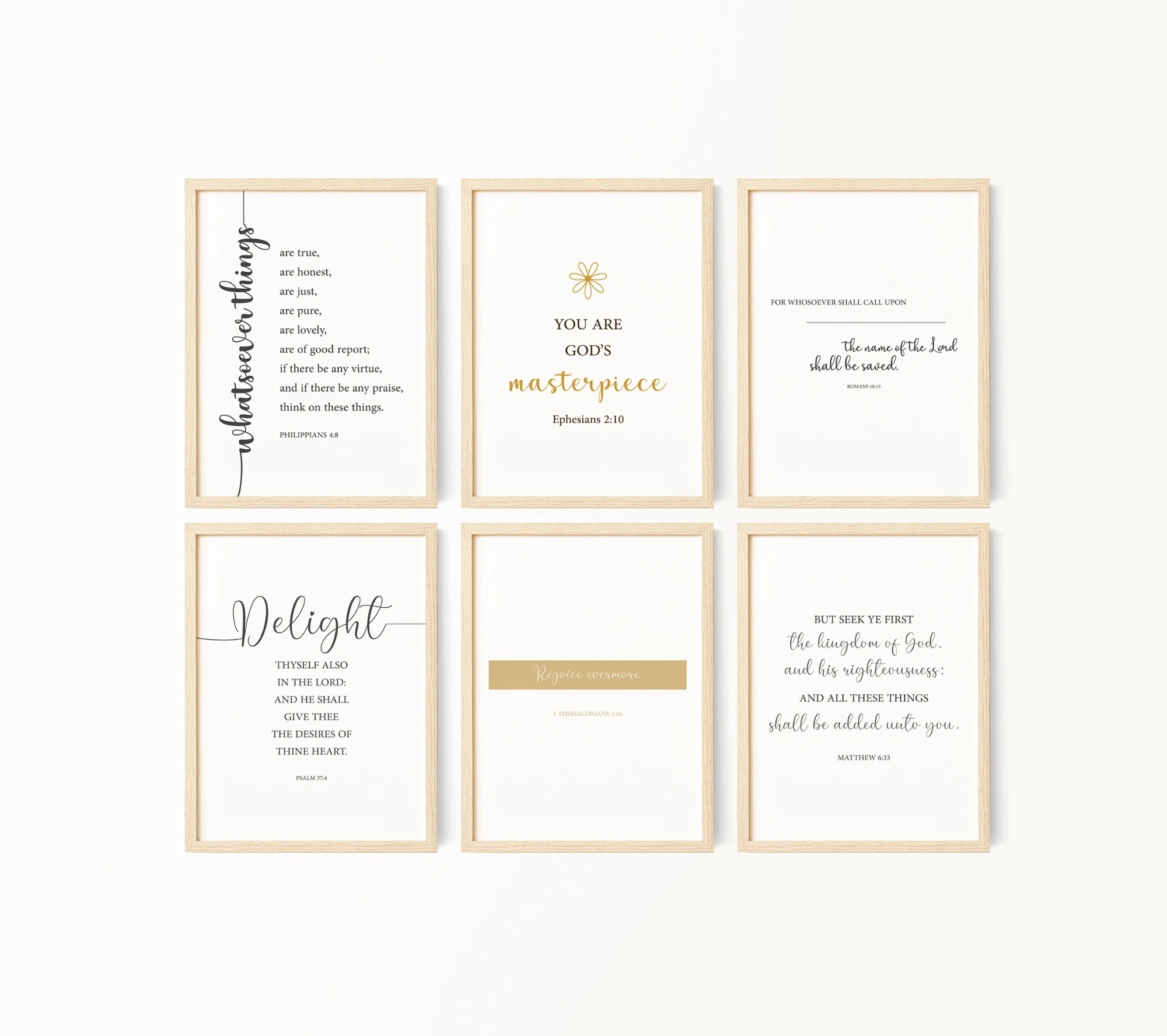 Set of 6 Bible Verses Wall Art, Bible Verses Gallery, Christian Home Wall Decor, Scripture Poster, Christian Gift