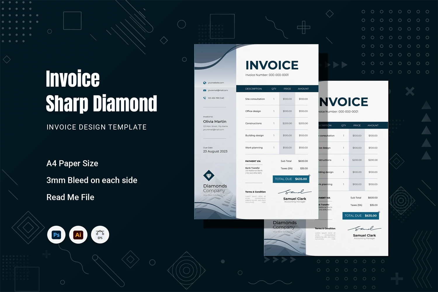 Professional invoice samples of the highest quality for any business or individual use. This invoice will help you in your business to save time, organize your product data, and identify your customers and items. It is designed for individual and corporate use. This printable stationery pack includes an invoice template designed to increase the credibility of your business. They're quick to customize, as all you've got to do is add your business logo to get a letterhead or envelope you can use immediately.