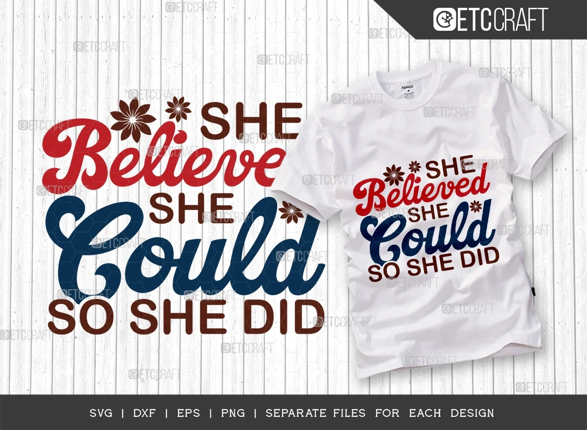 The "She Believed She Could So She Did" quote is a powerful and motivating mantra for women of all ages, making this bundle a must-have for anyone who believes in the strength and potential of women.