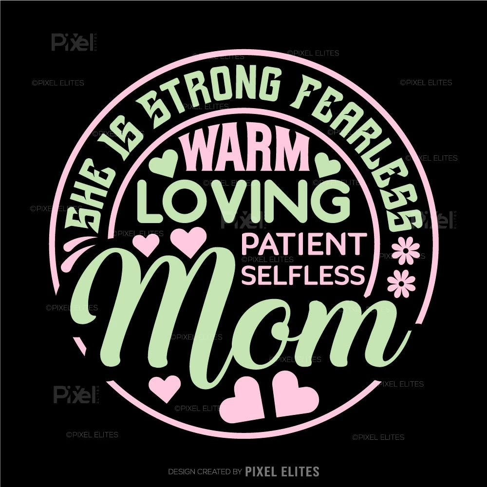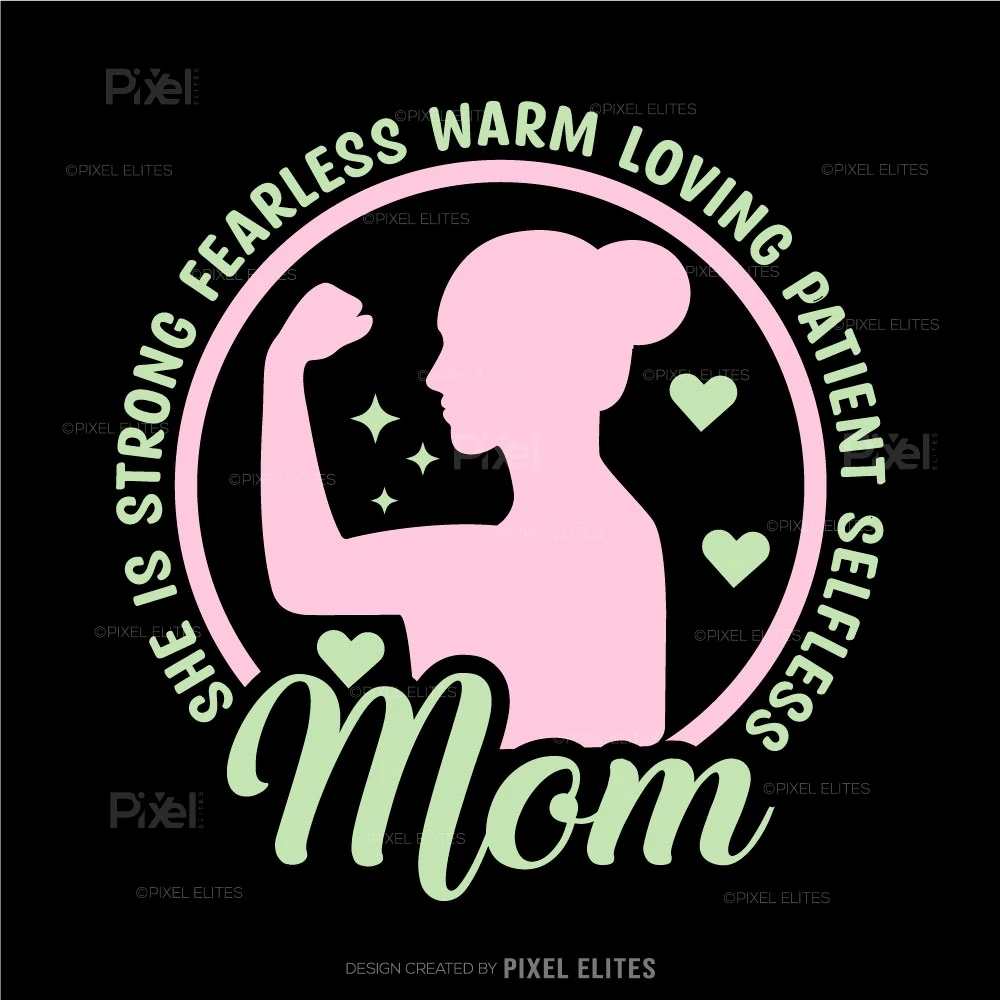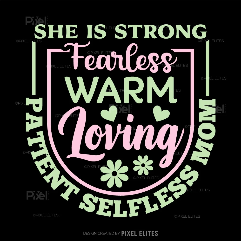 Product Description: She Is Strong Fearless Warm Loving SVG Mother's Day Design