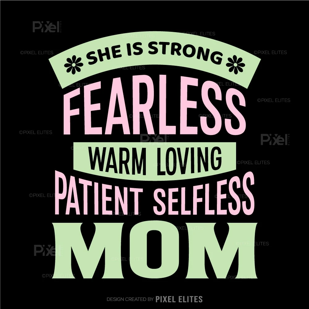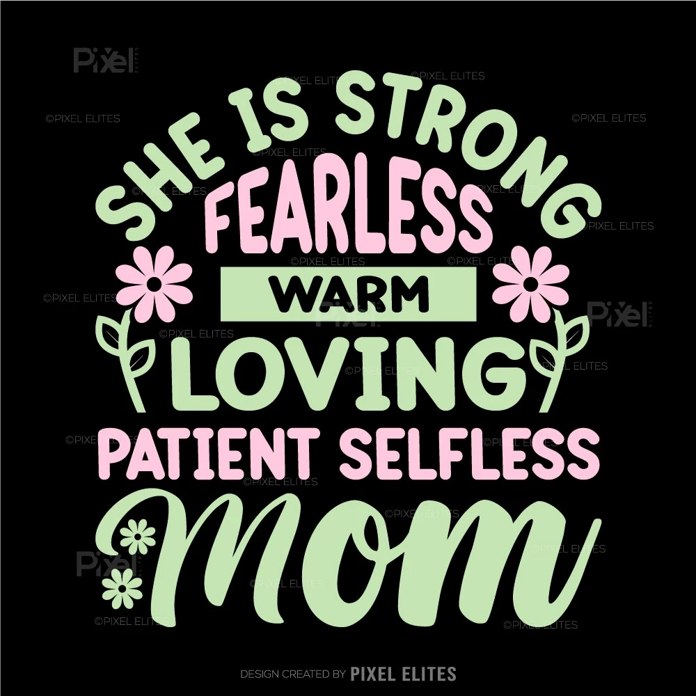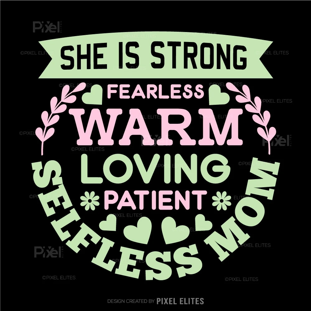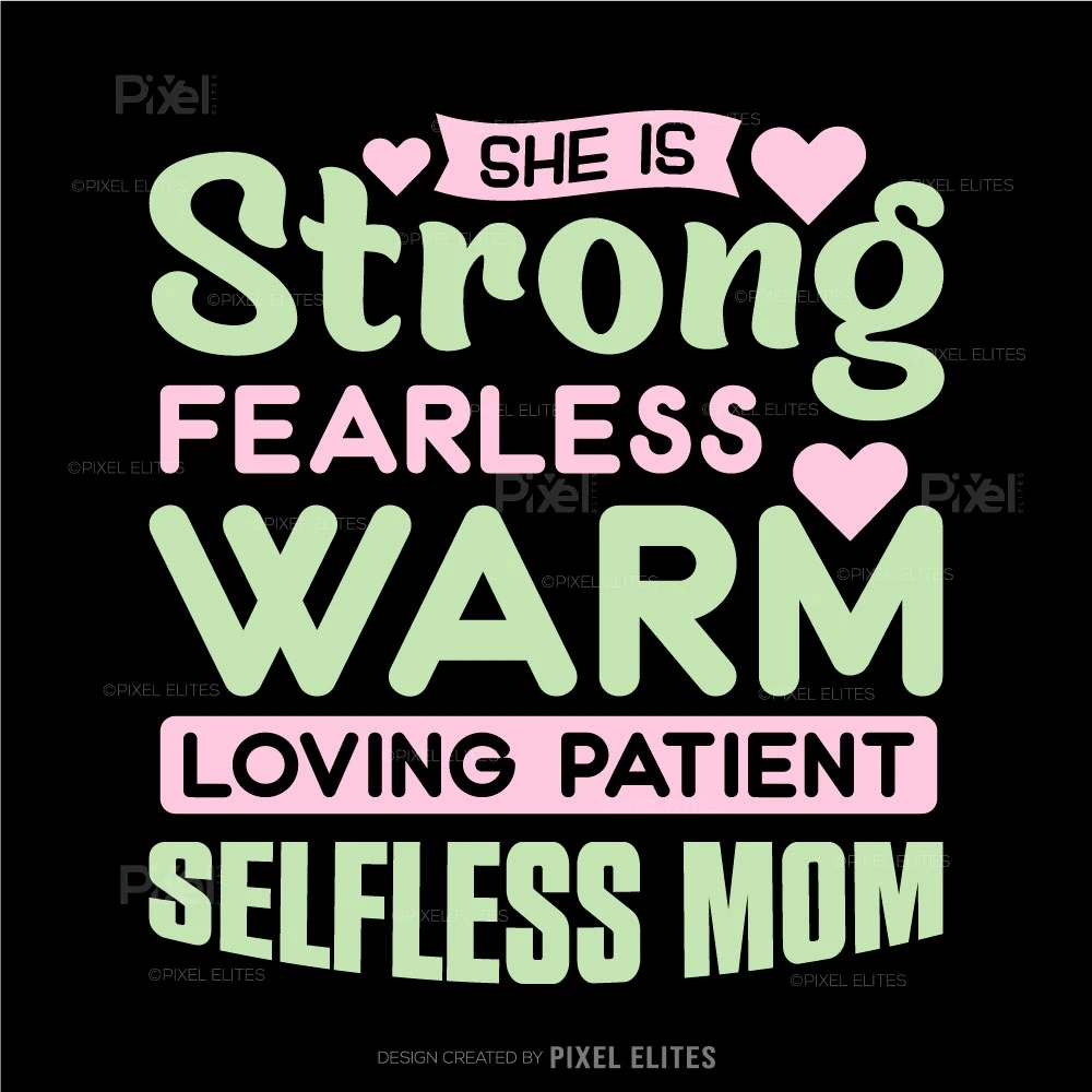 Product Description: She Is Strong Fearless Warm Loving SVG Mother's Day Design
