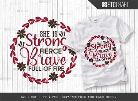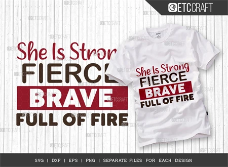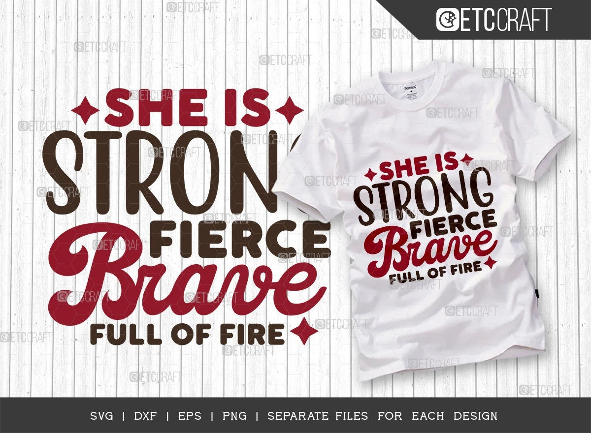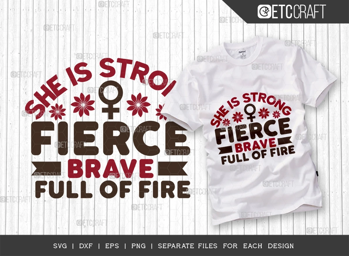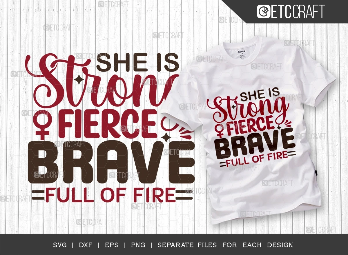 The "She Is Strong Fierce Brave Full Of Fire" bundle is specially crafted to celebrate the spirit of womanhood and promote female empowerment. Its unique designs exude confidence, determination, and fearlessness, making it an ideal choice for Women's Day projects or any occasion that honors strong women.