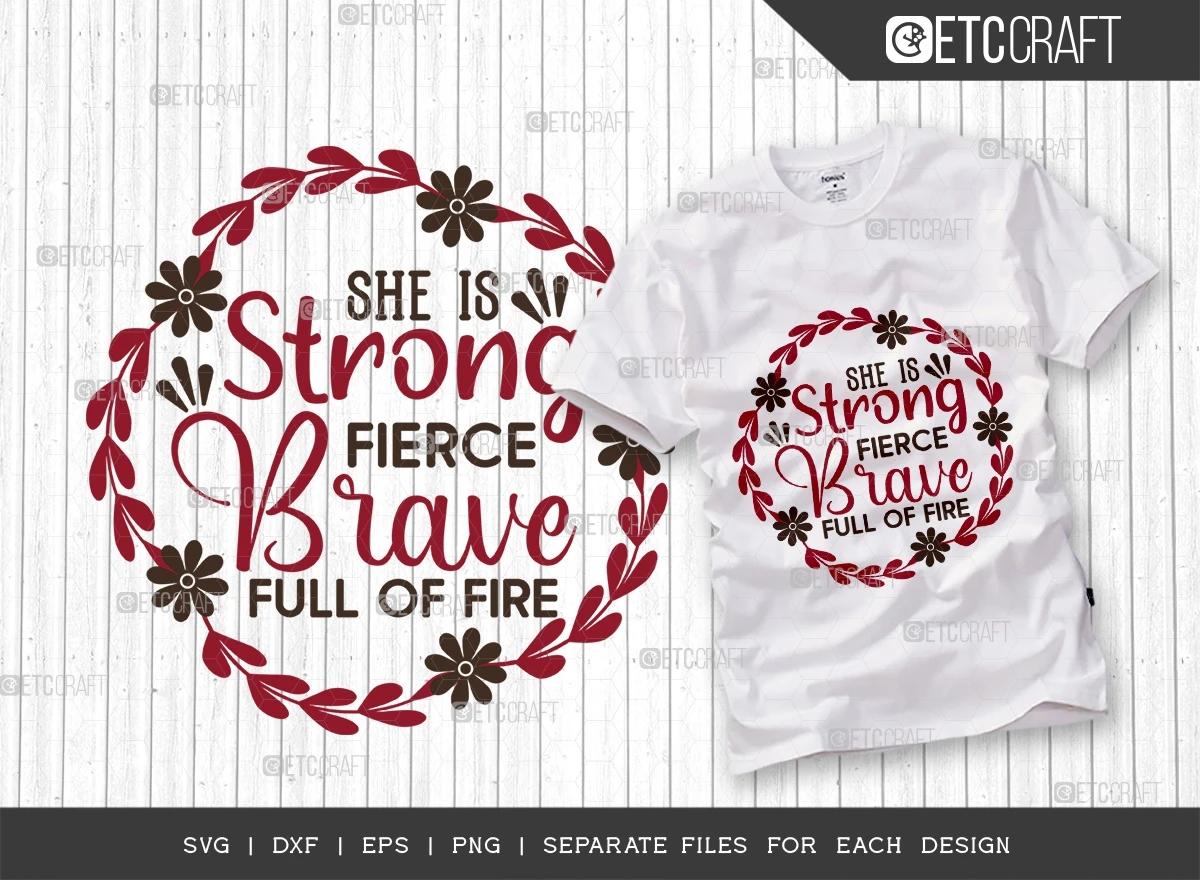 "She Is Strong Fierce Brave Full Of Fire SVG Bundle" - a powerful collection of designs that celebrate the strength, courage, and determination of women. This versatile bundle is perfect for anyone looking to embrace and empower the essence of womanhood.