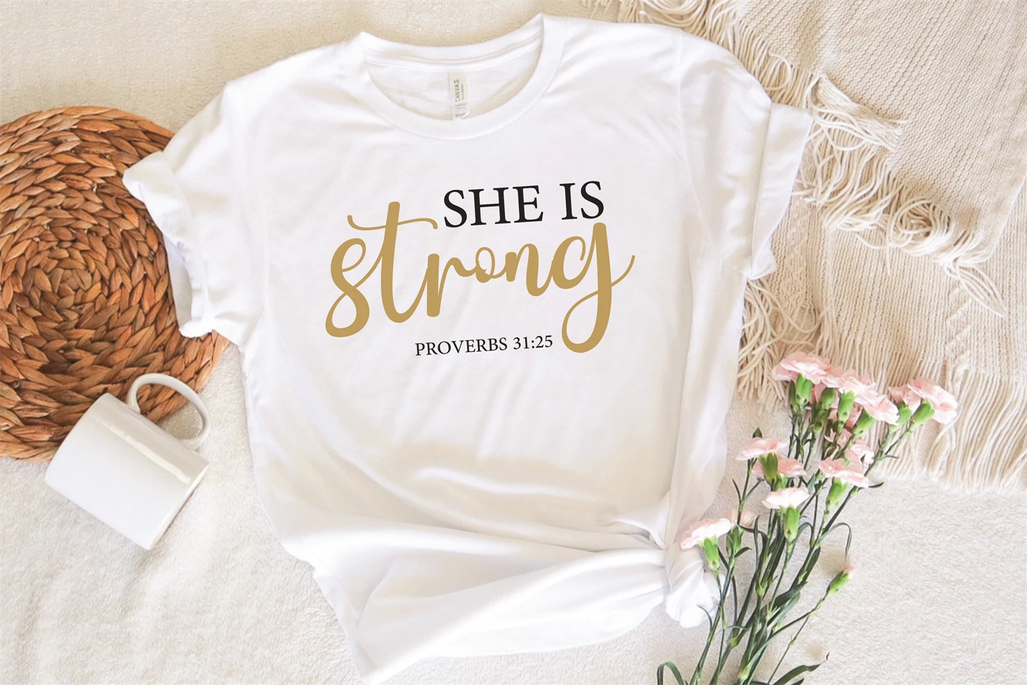 She is Strong SVG, Proverbs 31:25, Christian SVG, File For Cricut, Bible Svg, Gift for Her, She T-Shirt Design, Digital Download