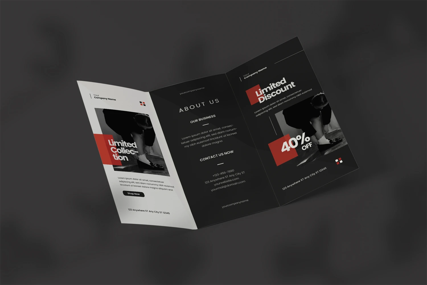 This corporate business brochure template is a trifold brochure, and it is stylish, sophisticated, and professional. This brochure is appropriate for any business or corporate publication and can also be used for publications such as annual reports and company profiles. easily editable for easy understanding. Just drop in your own images and texts, and its ready.