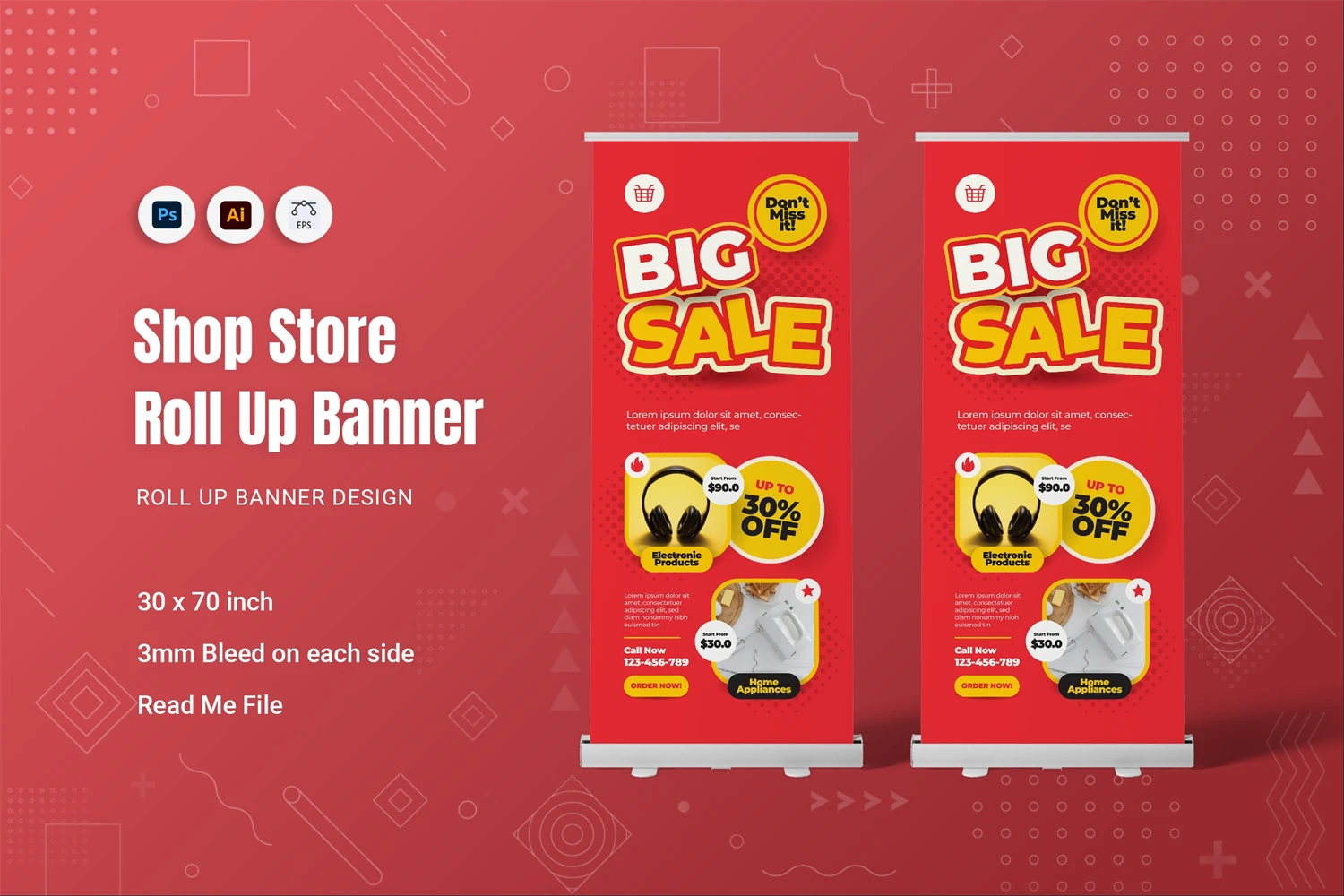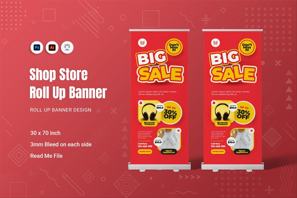 Instantly communicate your brand's through our roll-up banner template. Its standout design is optimized for the impactful presentation of visuals and content alike.