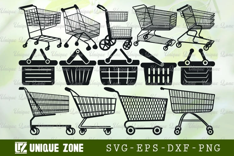 Shopping Cart SVG Bundle, Shopping Trolley Svg, Basket Svg, Small Basket Svg, Shopping Basket Svg, Cart Svg, Supermarket Svg,