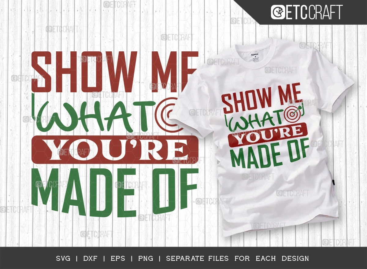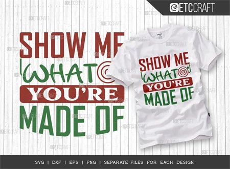 Don't miss the chance to elevate your design game with the "Show Me What You're Made Of SVG Bundle." Enhance your projects, create remarkable custom apparel, and craft exceptional merchandise that leaves a lasting impact. Whether you're a seasoned designer or a hobbyist, this bundle is the perfect addition to your creative arsenal. Let your imagination take flight, and bring your vision to life with these captivating SVGs for typography t-shirt designs and beyond!