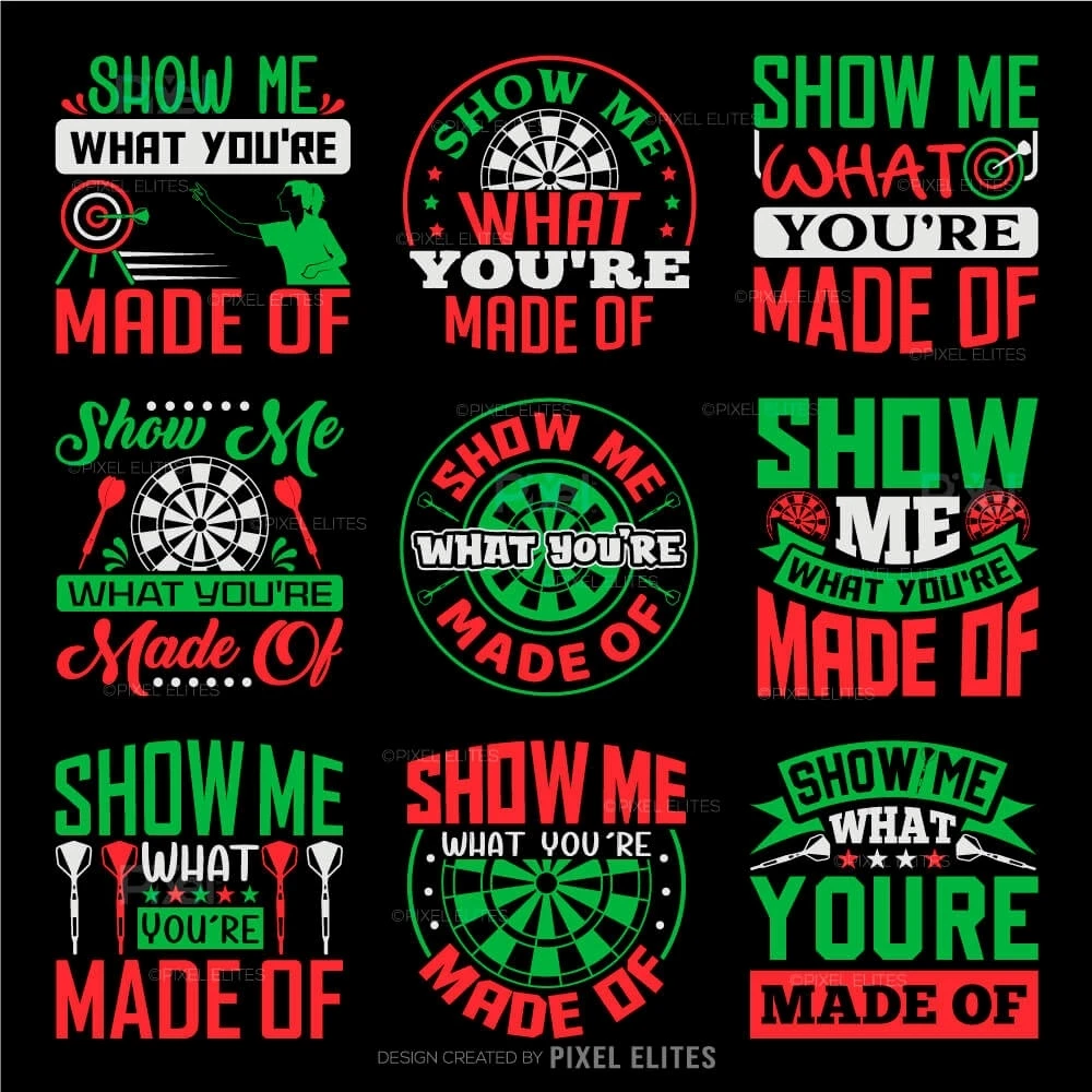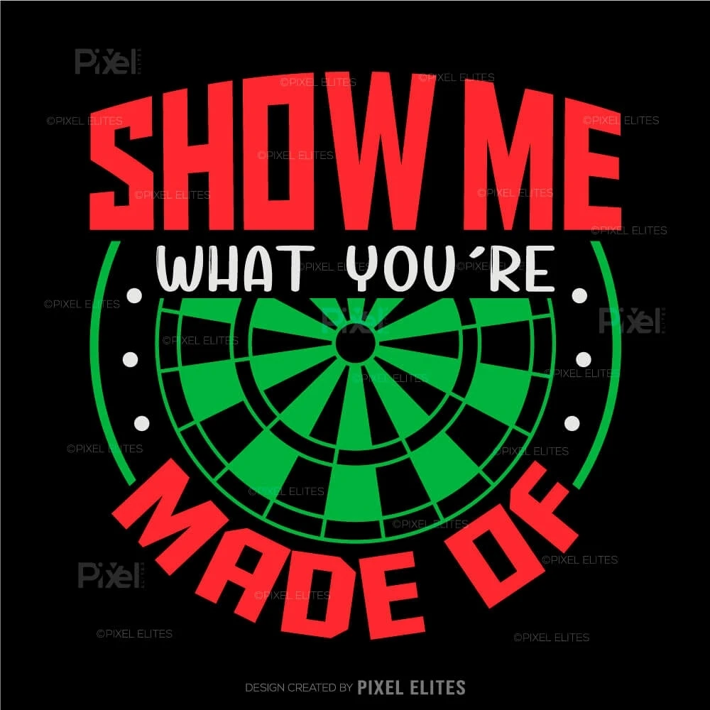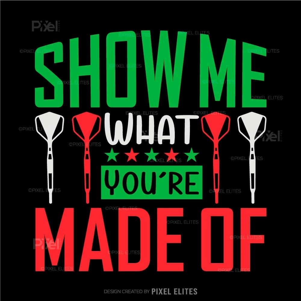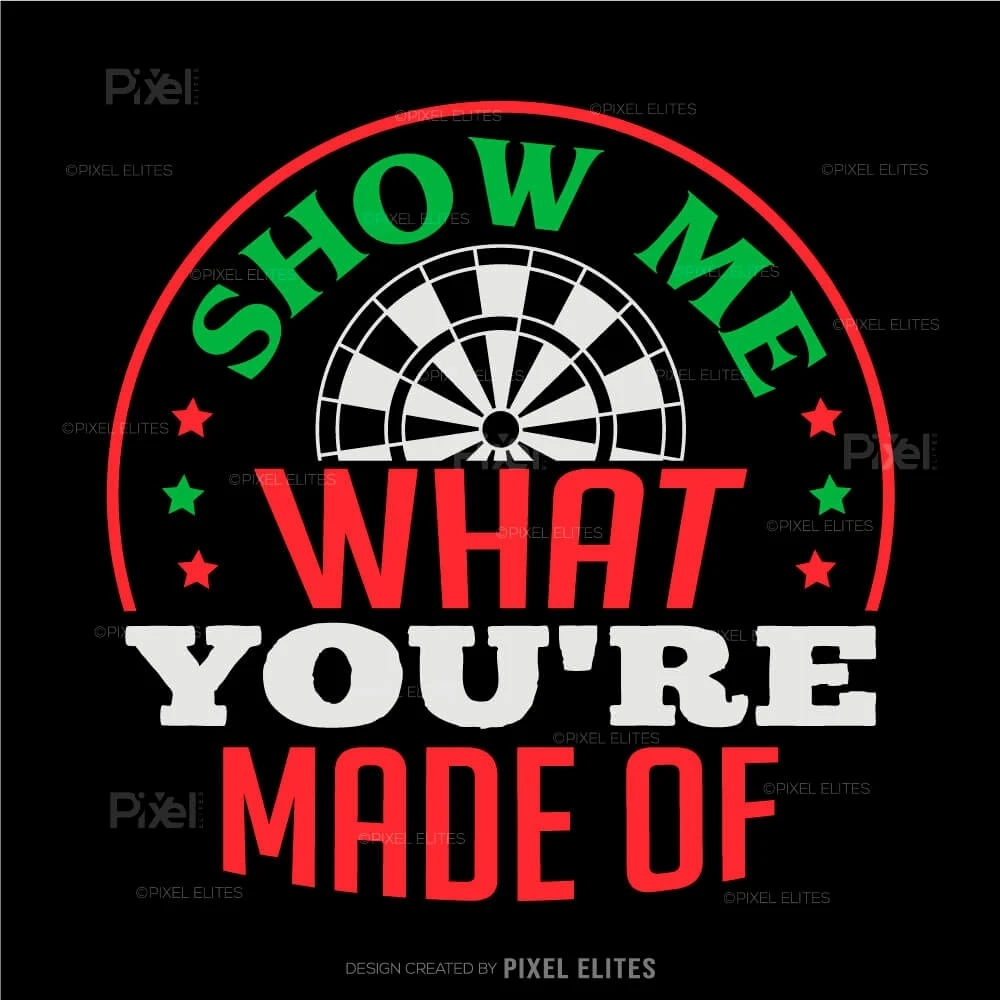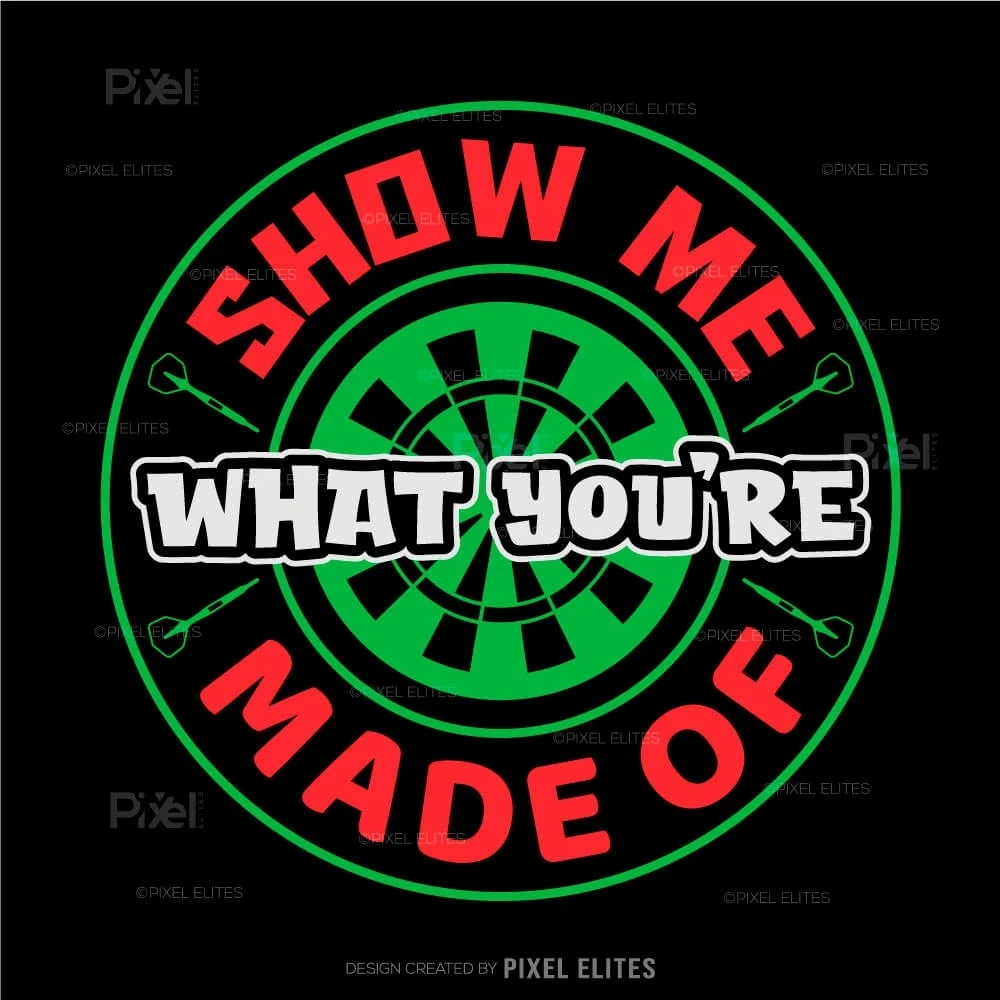 Challenge yourself and your opponents with the Show Me What You're Made Of SVG, a dynamic design from the Dartboard Bundle that captures the competitive spirit of darts. Perfect for players, teams, and fans who want to showcase determination and skill, this SVG design is ideal for customizing apparel, gear, and accessories that inspire confidence and focus.