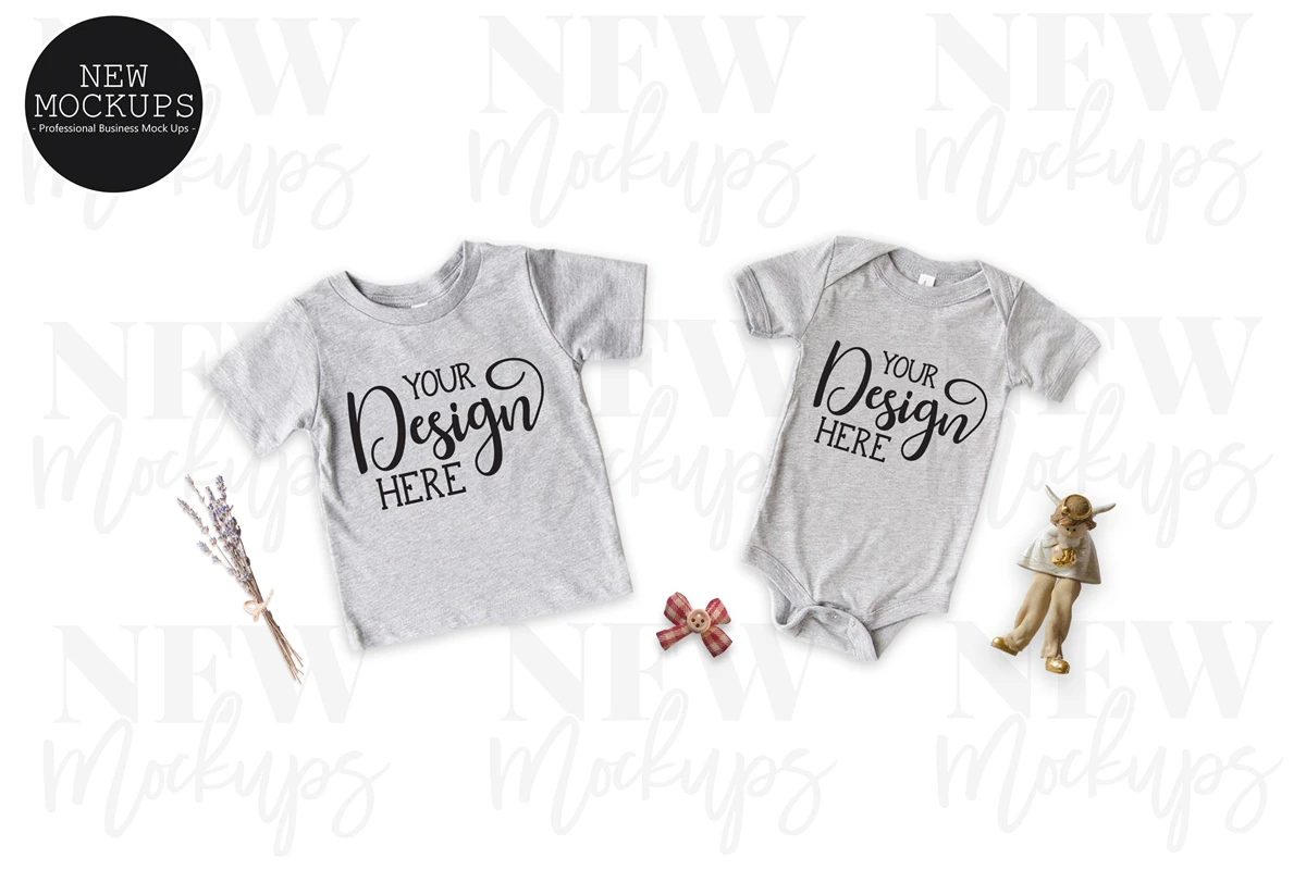 Bella Canvas 3001B Gray Toddler Shirt & 100B Bodysuit Mockup!