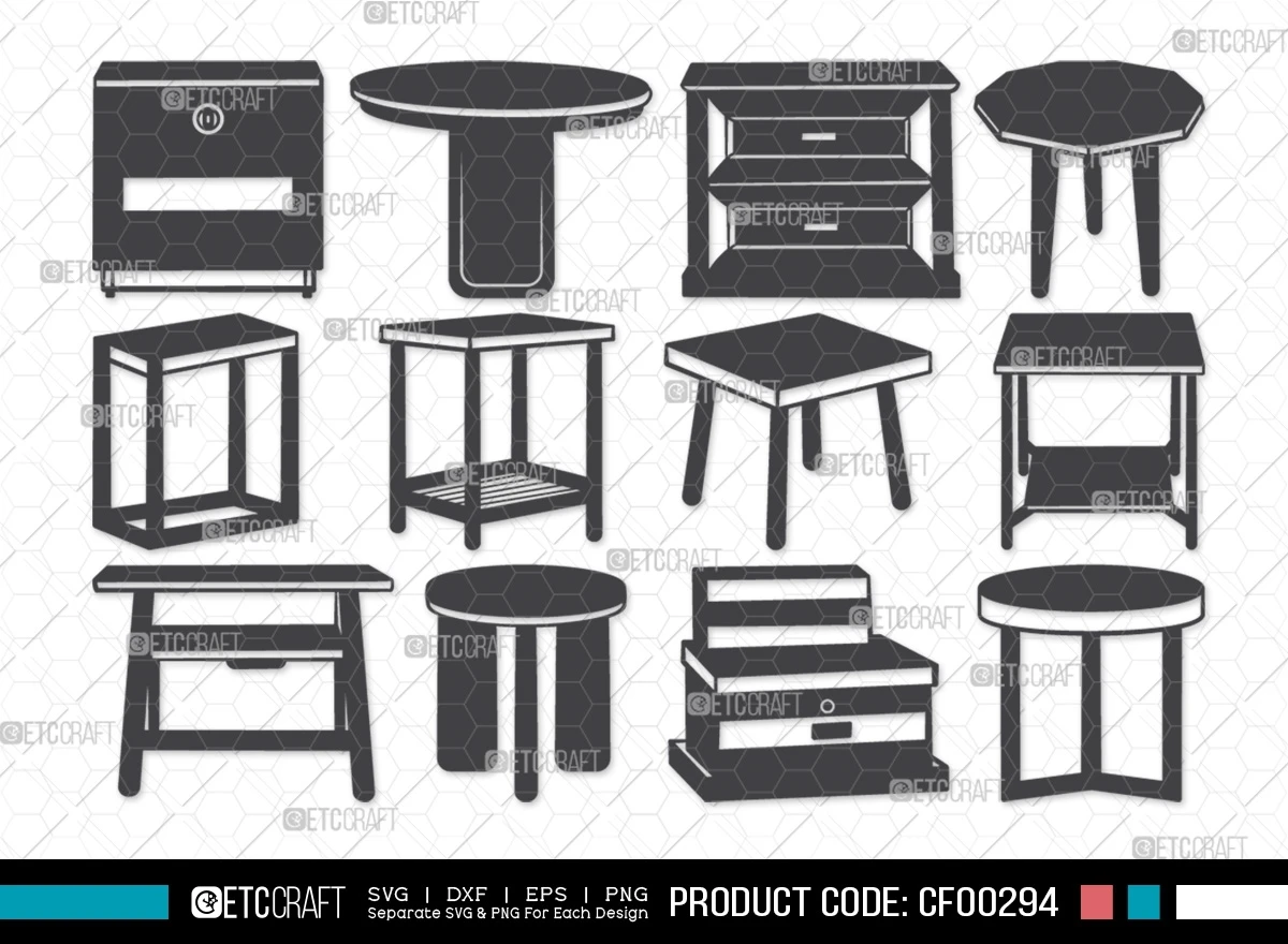 Introducing our Side Table Silhouette and Round Decorative Coffee Table SVG Cut File Bundle, a versatile collection of digital assets perfect for interior designers, crafters, and DIY enthusiasts. This bundle is designed to add an elegant and sophisticated touch to your creative projects and interior design endeavors.