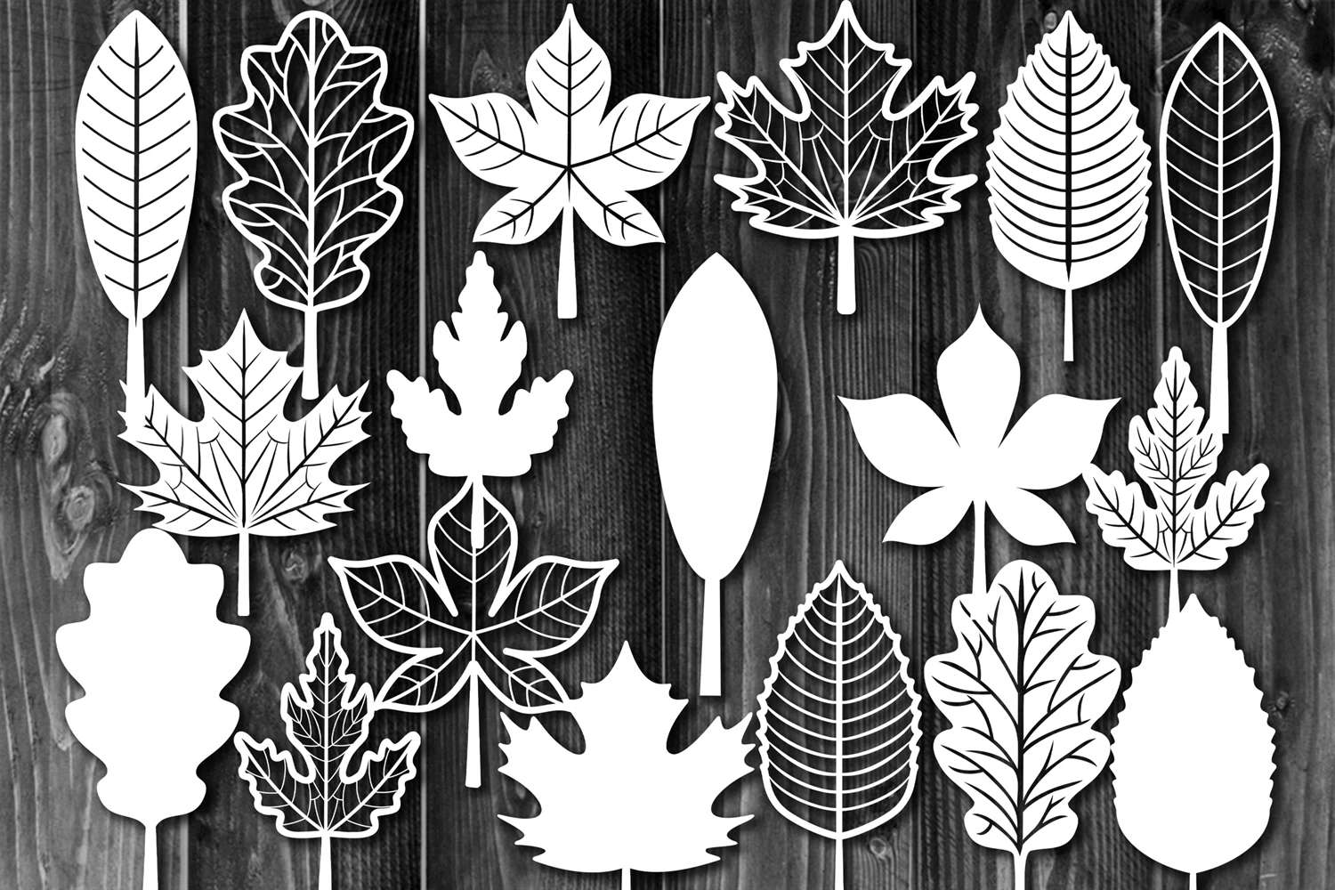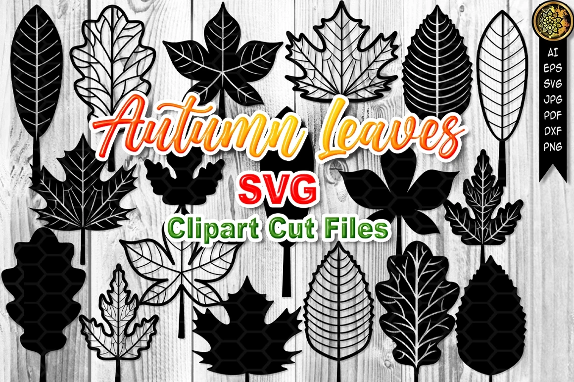 Fall & Autumn Leaves SVG Clipart Laser Cut Files Set of Silhouette Outline and Isolated Designs. Great SVG set for creating a handmade gift in any performance, poster printing, wall arts, or even creating a seamless pattern for a POD project.
