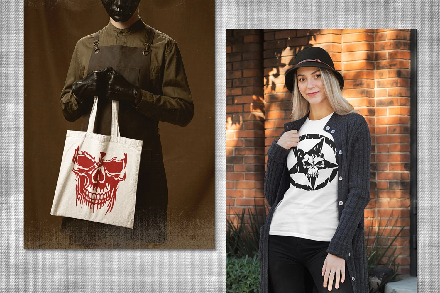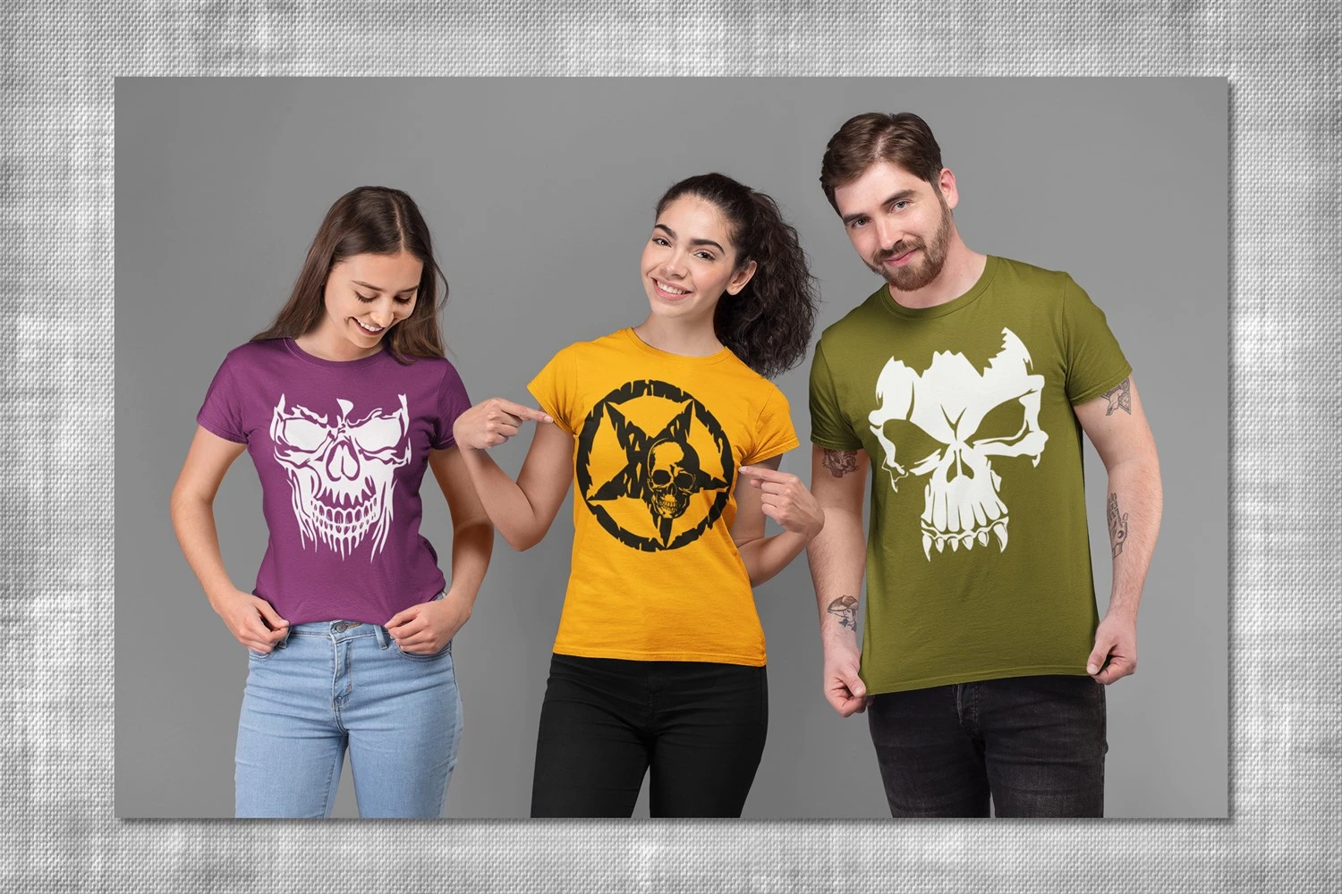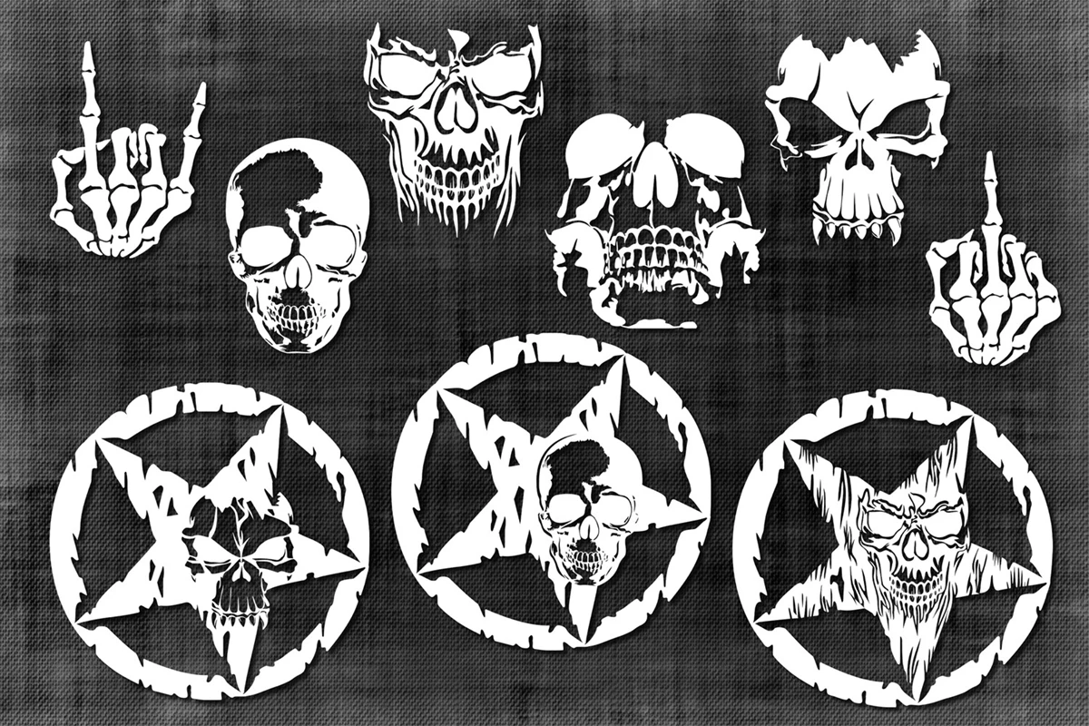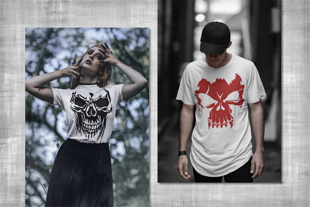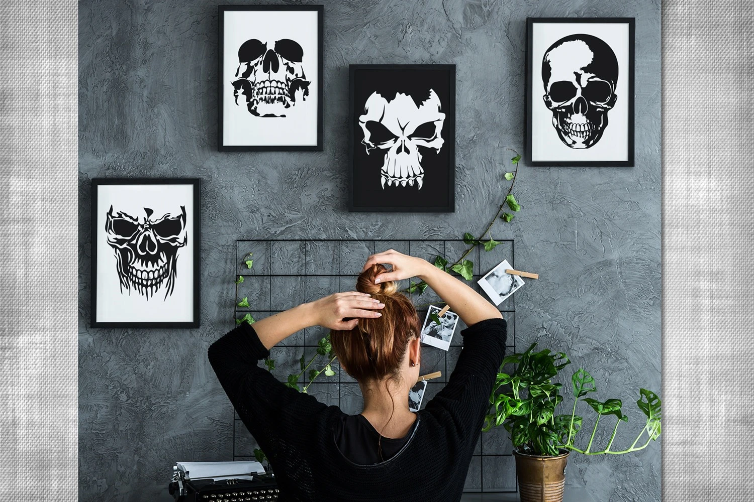Halloween Skull and Skeleton Hand Silhouette SVG Cut Files for your creative DIY projects, and Home Decorations. Perfect for vinyl, personalized T-shirts, apparel, cups, stickers, card stock, and other DIY projects. Options are endless! The design comes in BLACK color which can be easily changed to your desired color.
