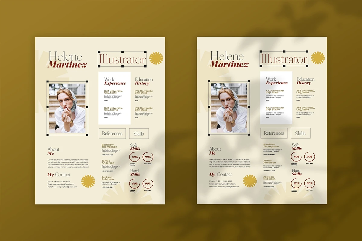 This CV resume design template lets you tell your story to potential employers or collaborators by showcasing your skills, experience, and accomplishments. It presents your credentials clearly and professionally to draw attention and highlight your strengths.