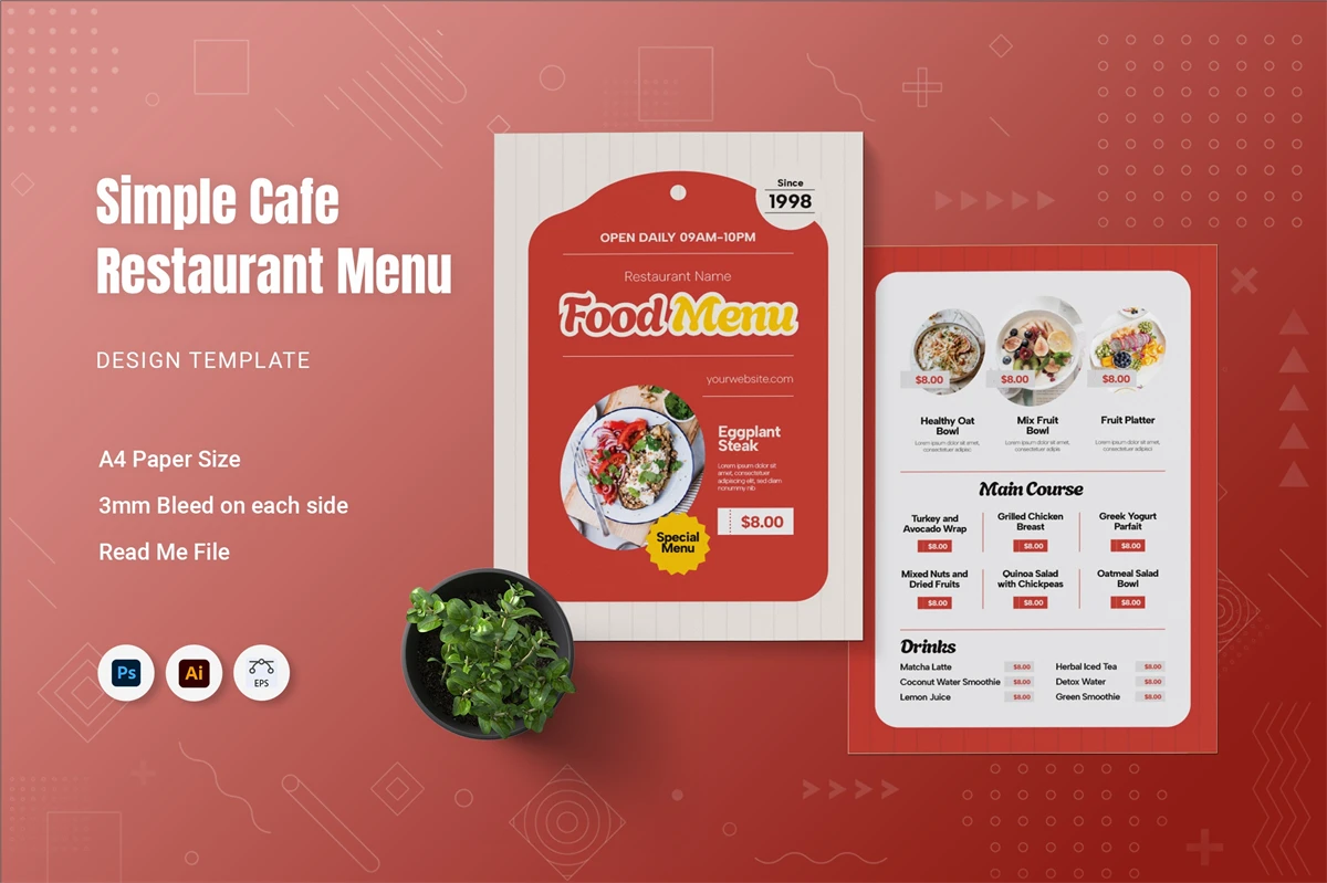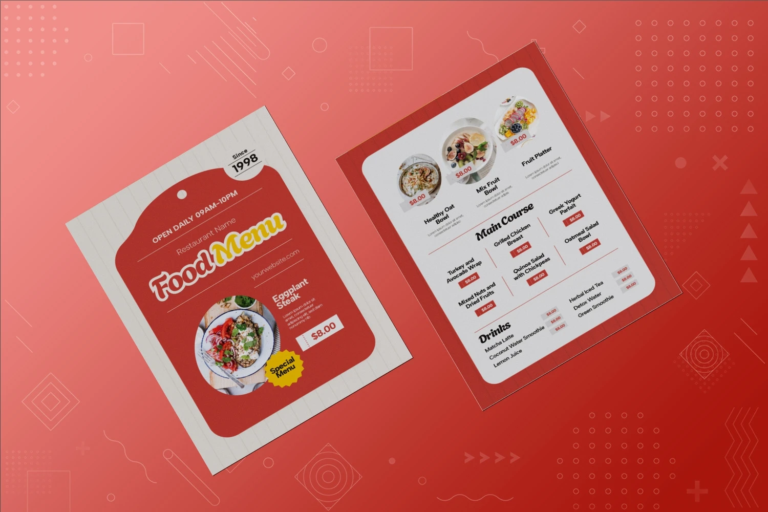 Utilizing enchanting imagery and versatile ordering options, you possess the capability to construct a menu that is equally unforgettable as the cuisine you provide. Let's generate a positive initial impact by selecting our template for your menu.