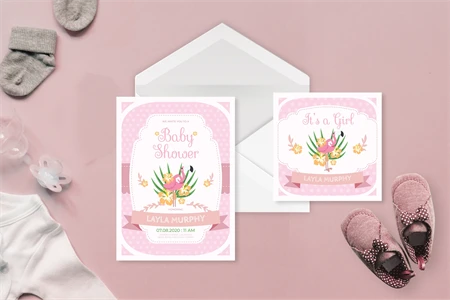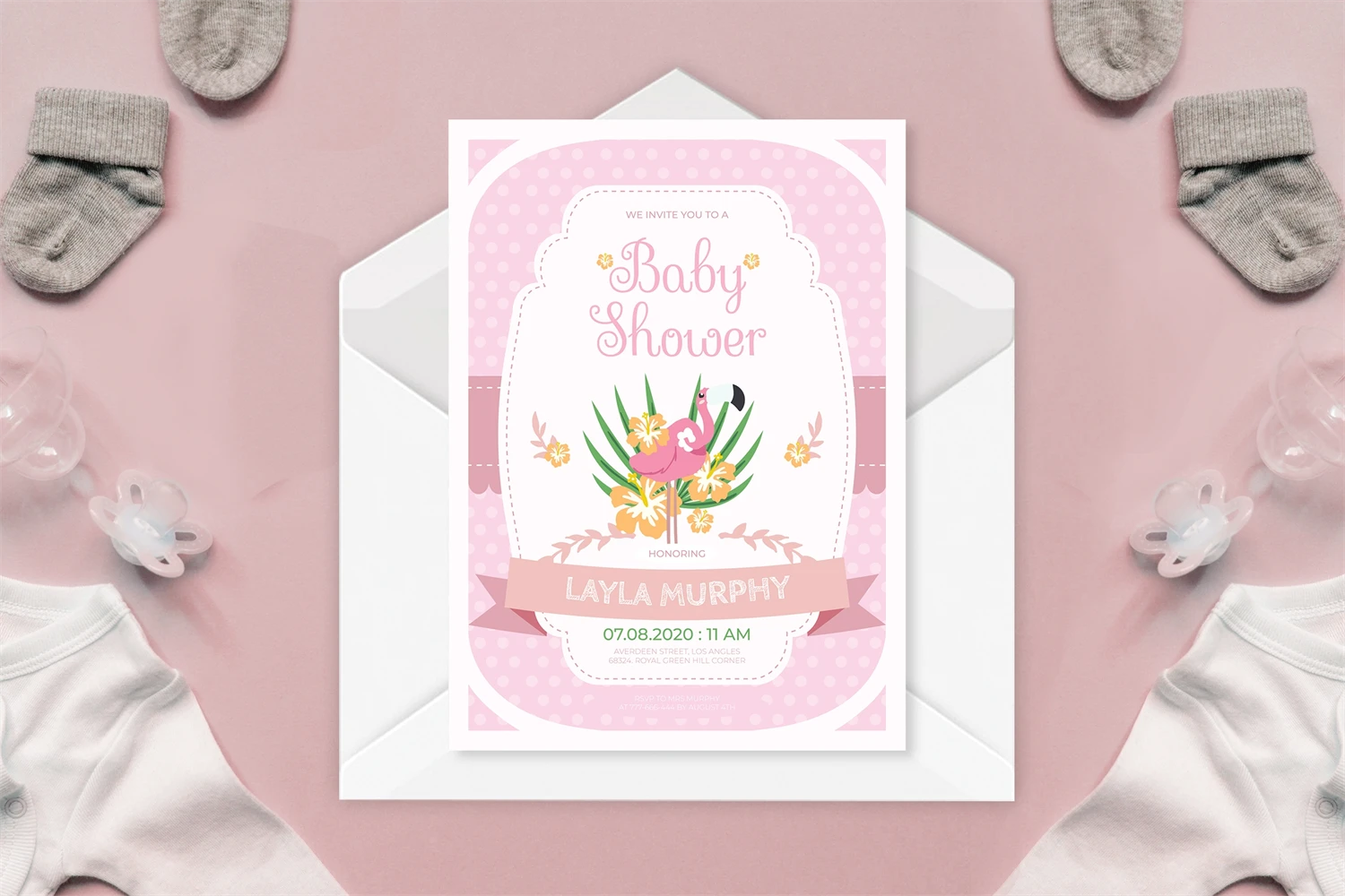 Simple Flamingo - Baby Shower Invitation, is an invitation card leaflet, poster design, etc. Simple and very elegant You can easily edit & adjust each design because each layer such as text, images and shapes are well organized and highlighted.