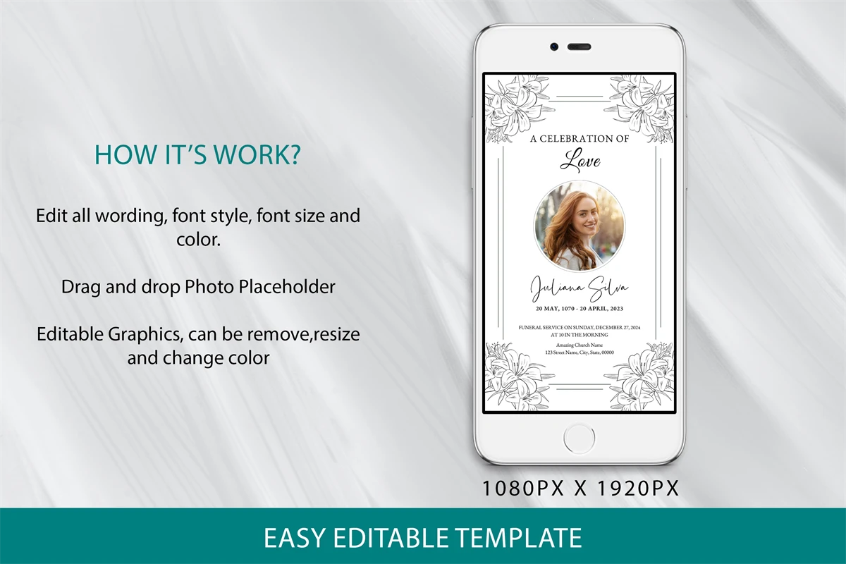 1080 x 1920 px CANVA Funeral Digital Invitation Template.