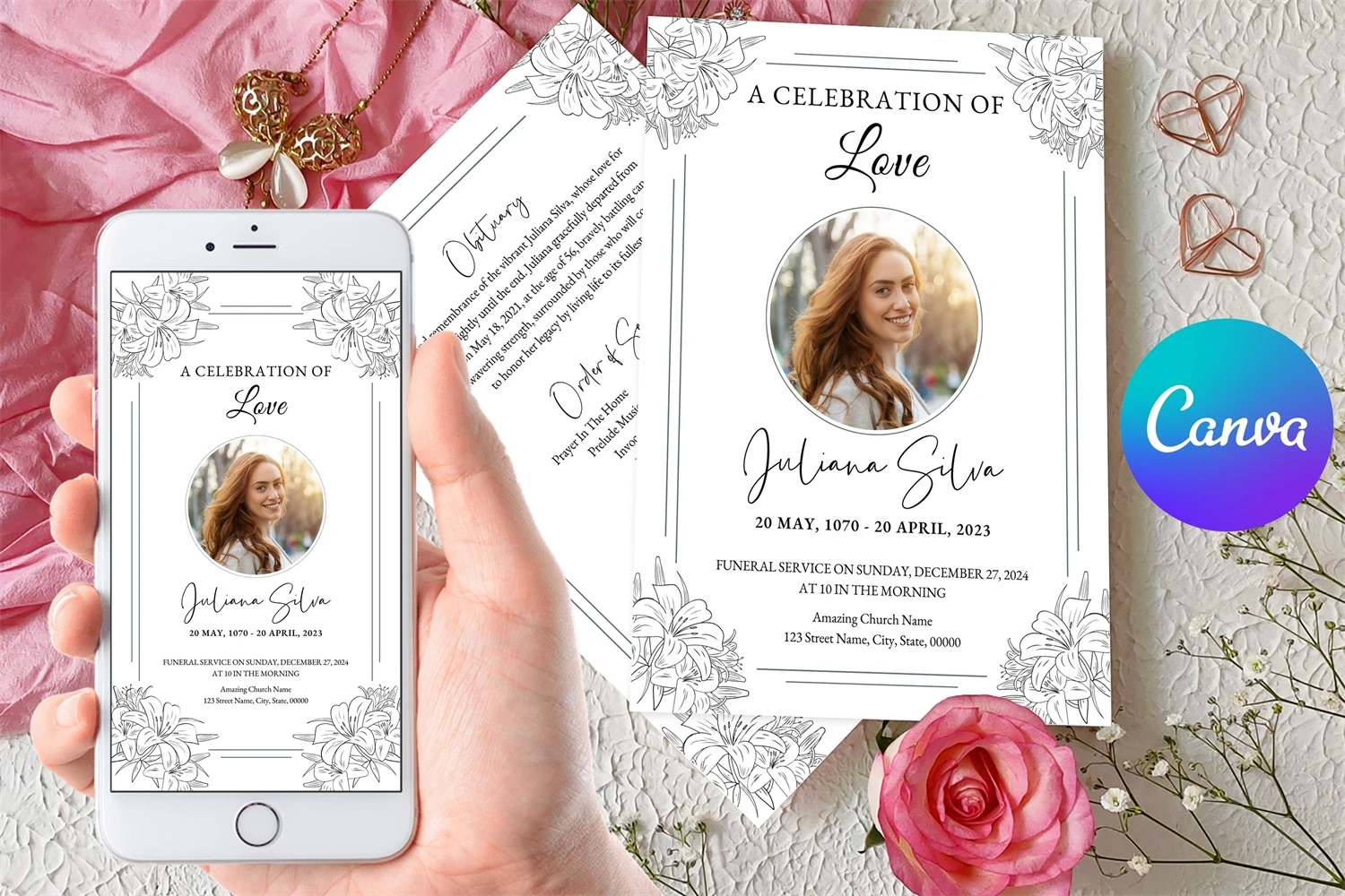 Customize, swiftly download, and send to friends and family within minutes. Digital and Printable Funeral Invitation Template.