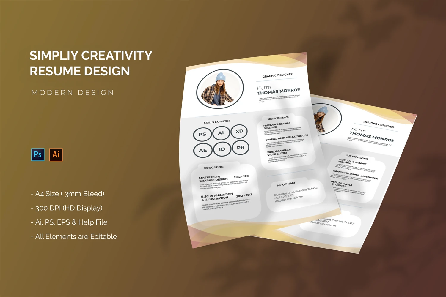 This is **Simpliy Creativity - Resume Template** Get it now!, CV Resume for All business and personal needs. This design is great for your business and will make your interest, elegant, and easily editable according to your needs (**Adobe Illustrator, Adobe Photoshop**). You can use this CV Resume for personal purposes, or company purposes, I hope you enjoy this, Hope you Like it, and dont forget to rate it, Thanks.