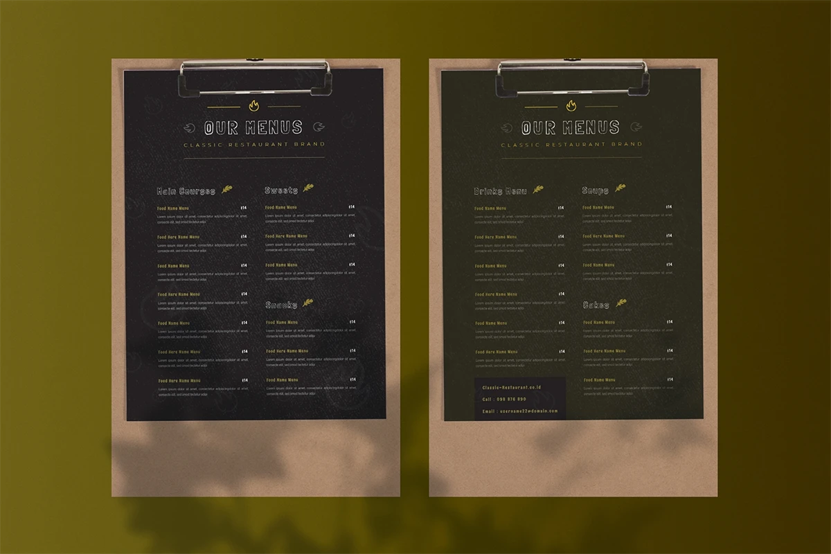Simply Classic - Restaurant Menu. This template is great for your business and will make your customers interested, elegant, and easily editable according to your needs, this restaurant menu is perfect for, promos, cafes, hotels, resort shops online. etc. I hope you enjoy this restaurant menu