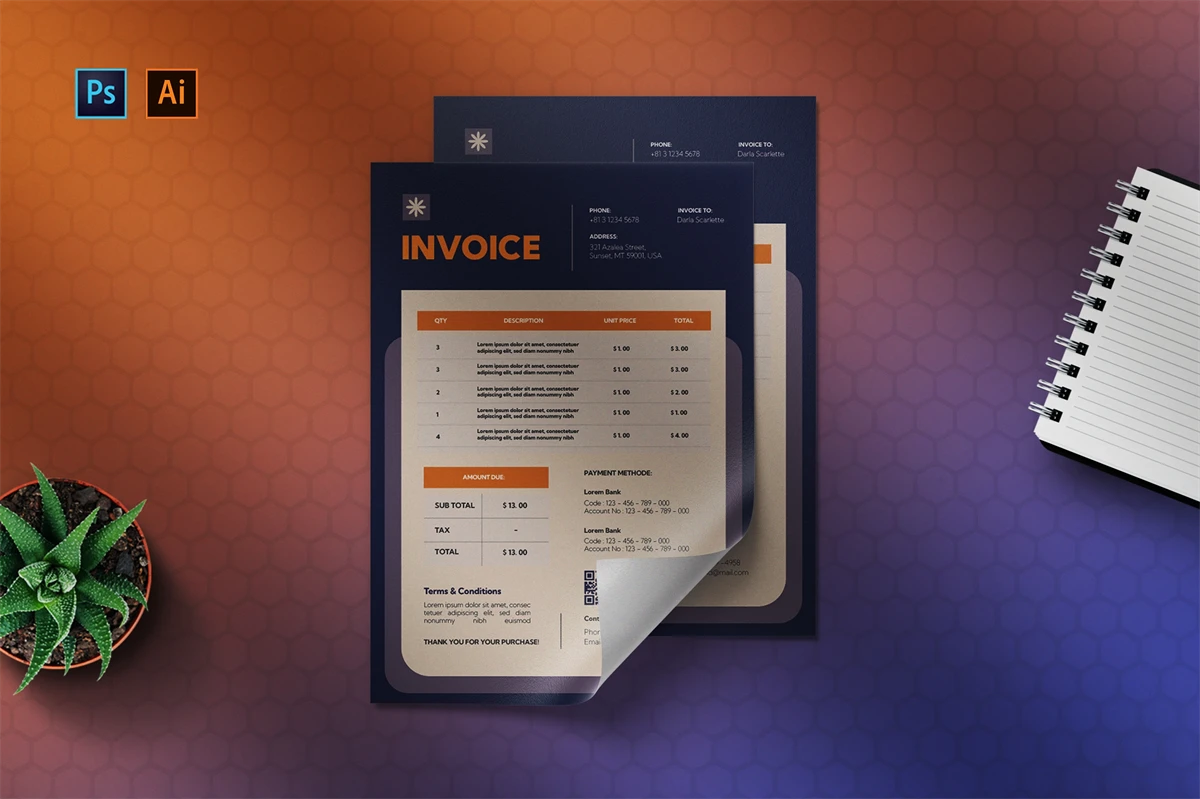 The invoice designs from our templates will present your brand with a professional look. Your invoices will look stylish and functional.